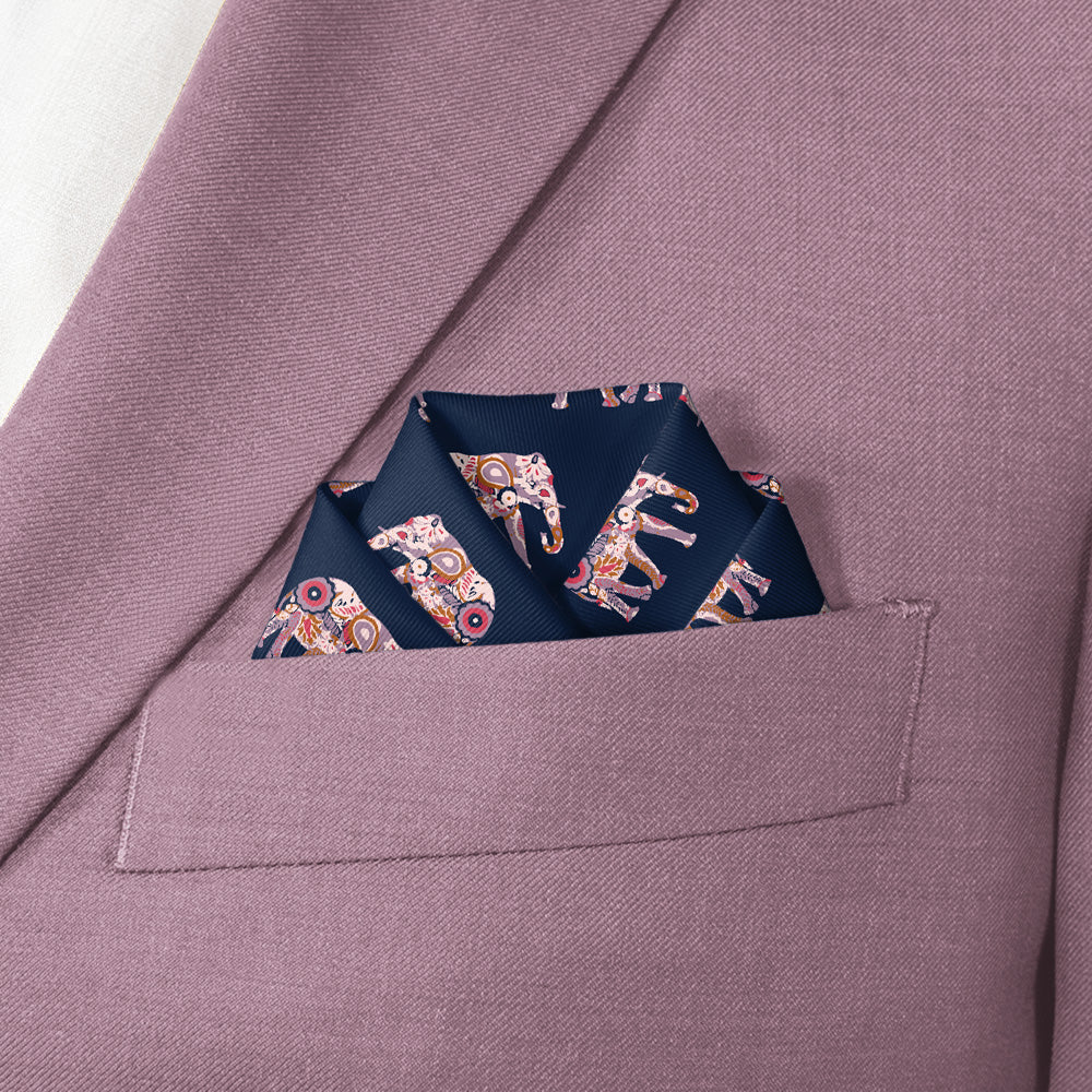 What's floral, fabulous, and tons of fun? The paisley elephants marching across this boho pocket square! The Floral Elephants square brings unforgettable charm to any occasion.