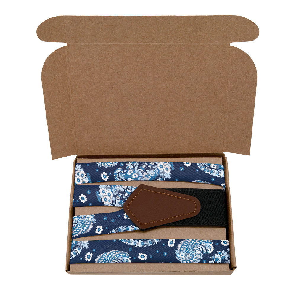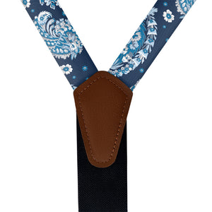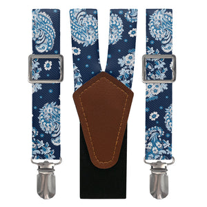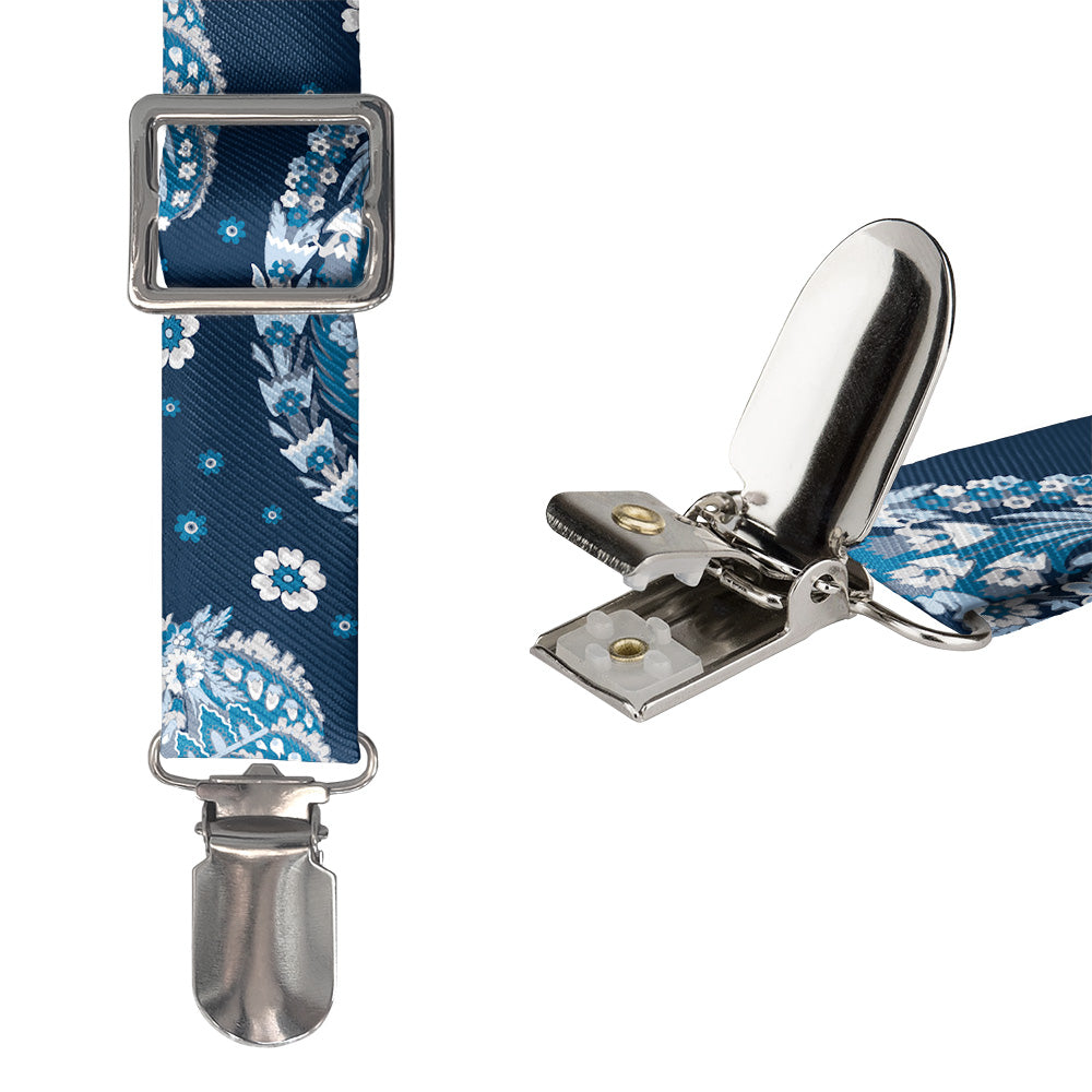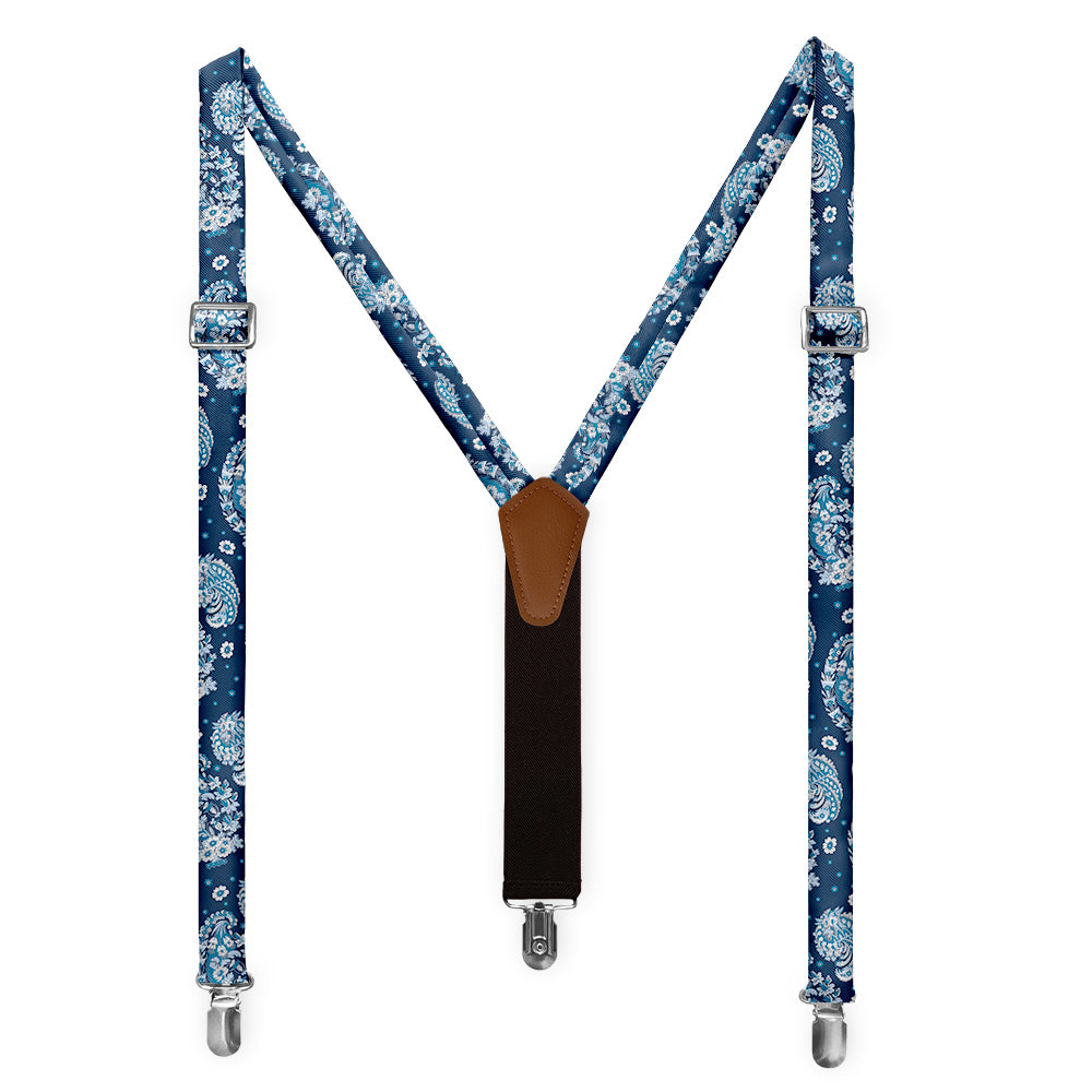 Printed fabric straps are 1-inch wide and secured to an elastic rear strap with vegan leather Y-back to allow the suspenders to move with you and extend as you bend. We use silver alligator pant clips that feature a special mechanism to ensure the suspenders clamp securely to pants.