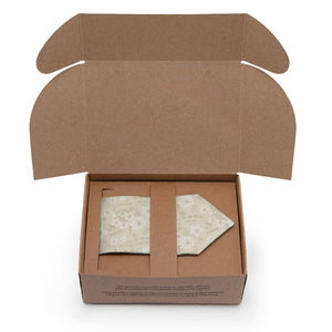 Sustainably sourced thoughtful packaging ready for gifting with 100% recycled and recyclable paper printed with vegetable inks.
