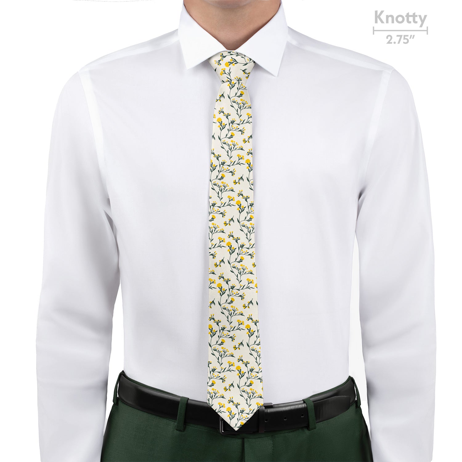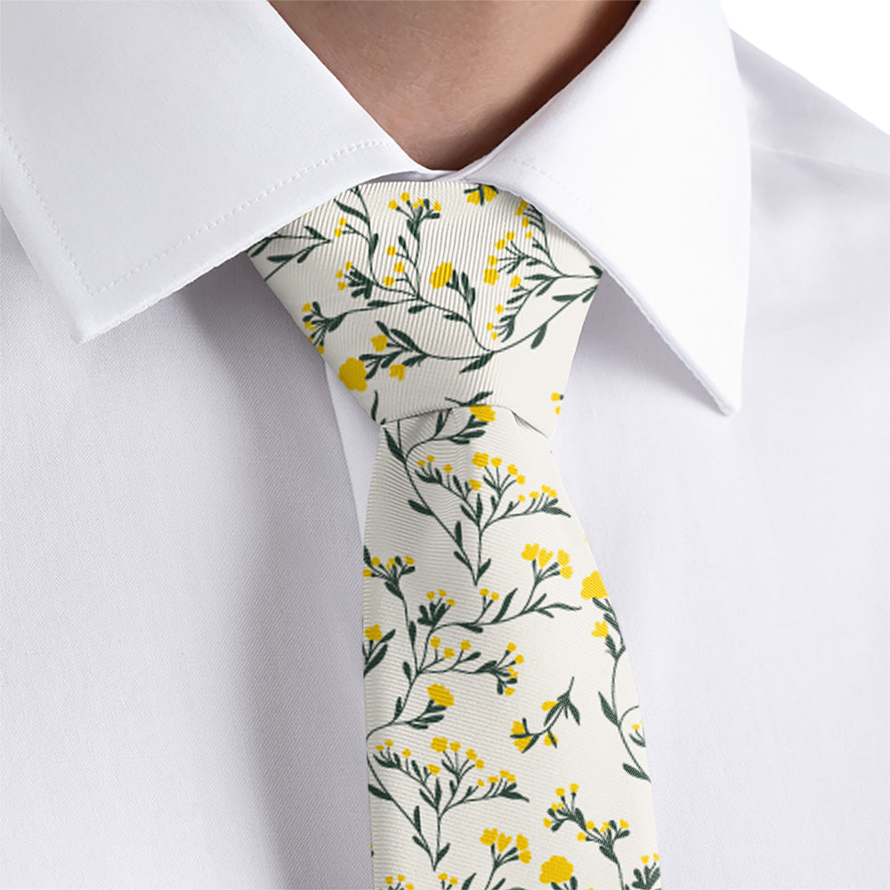 Add a touch of charm to your look with our Folksy Floral necktie. Inspired by delicate herbal flowers that you might find growing wild in a prairie, this winding and flowing floral necktie is romantic enough for weddings yet simple enough for everyday wear. Easily customize the colors of the Folksy Floral necktie to match your event or wardrobe today.