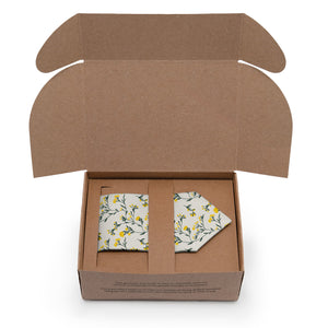 Sustainably sourced thoughtful packaging ready for gifting with 100% recycled and recyclable paper printed with vegetable inks.