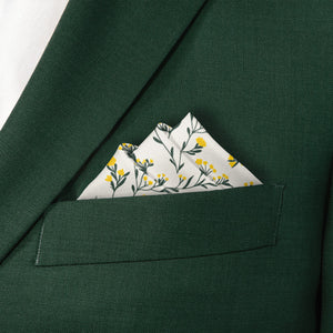 Get inspired by the free-spirited herbal flowers that grow wild in prairies with our Folksy Floral pocket square. Its charming and elegant floral design is suitable for any occasion, whether it's a wedding or daily wear. Make it your own by customizing the colors to match your event or personal style today.