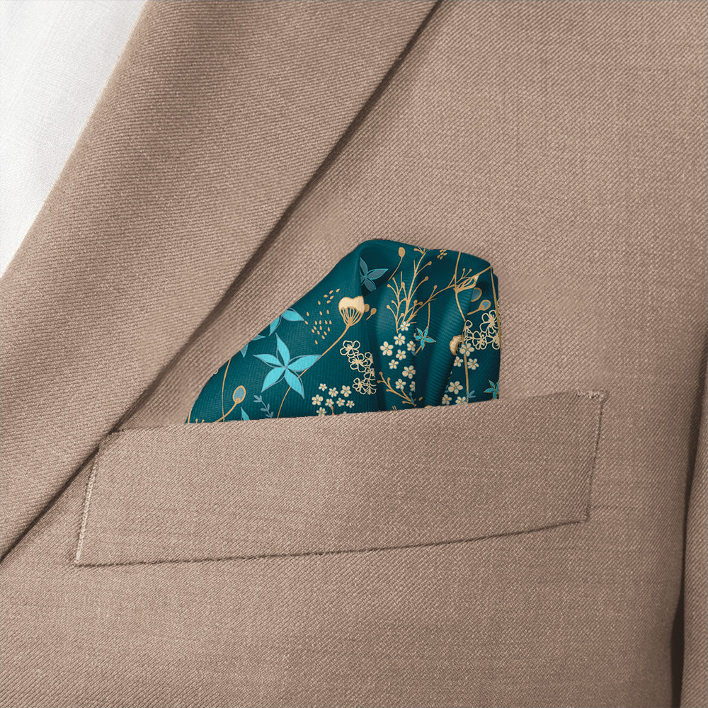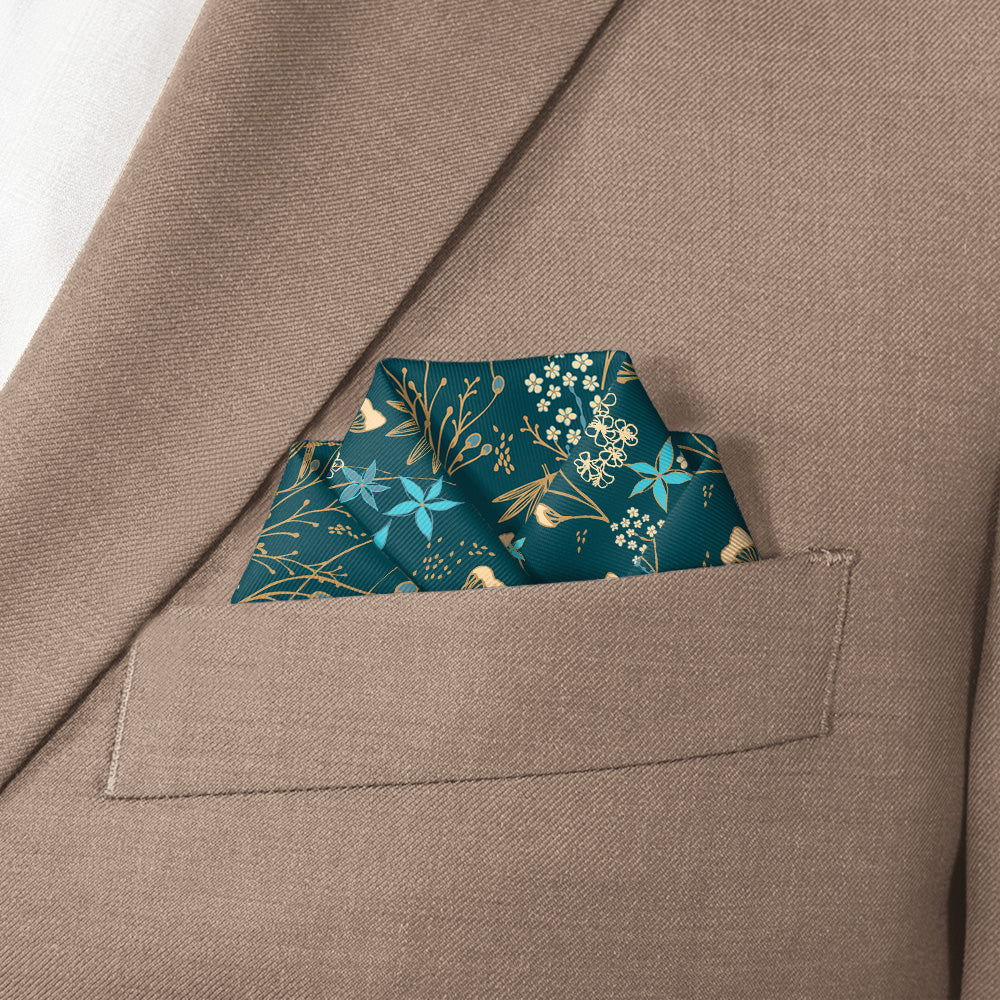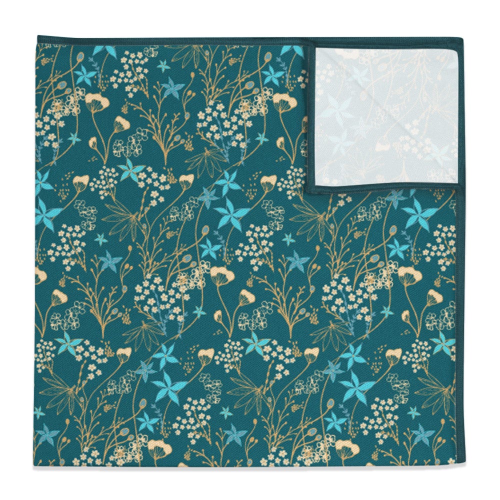 Twining vines and exuberant floral sprays give this pocket square the lush beauty of an overgrown garden. This dreamy floral print features painterly blossoms, leaves, and flower buds.