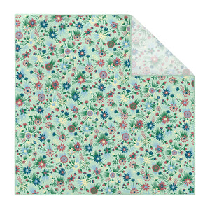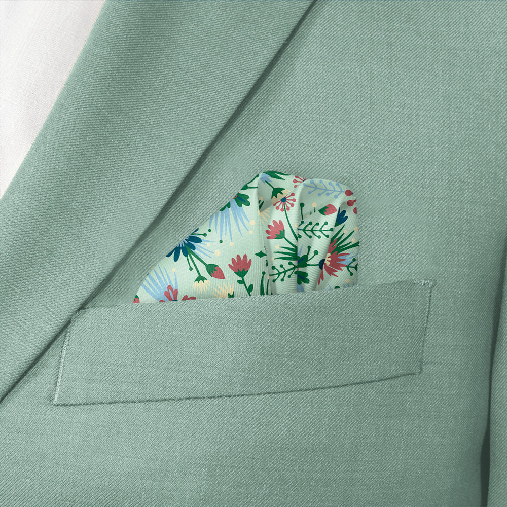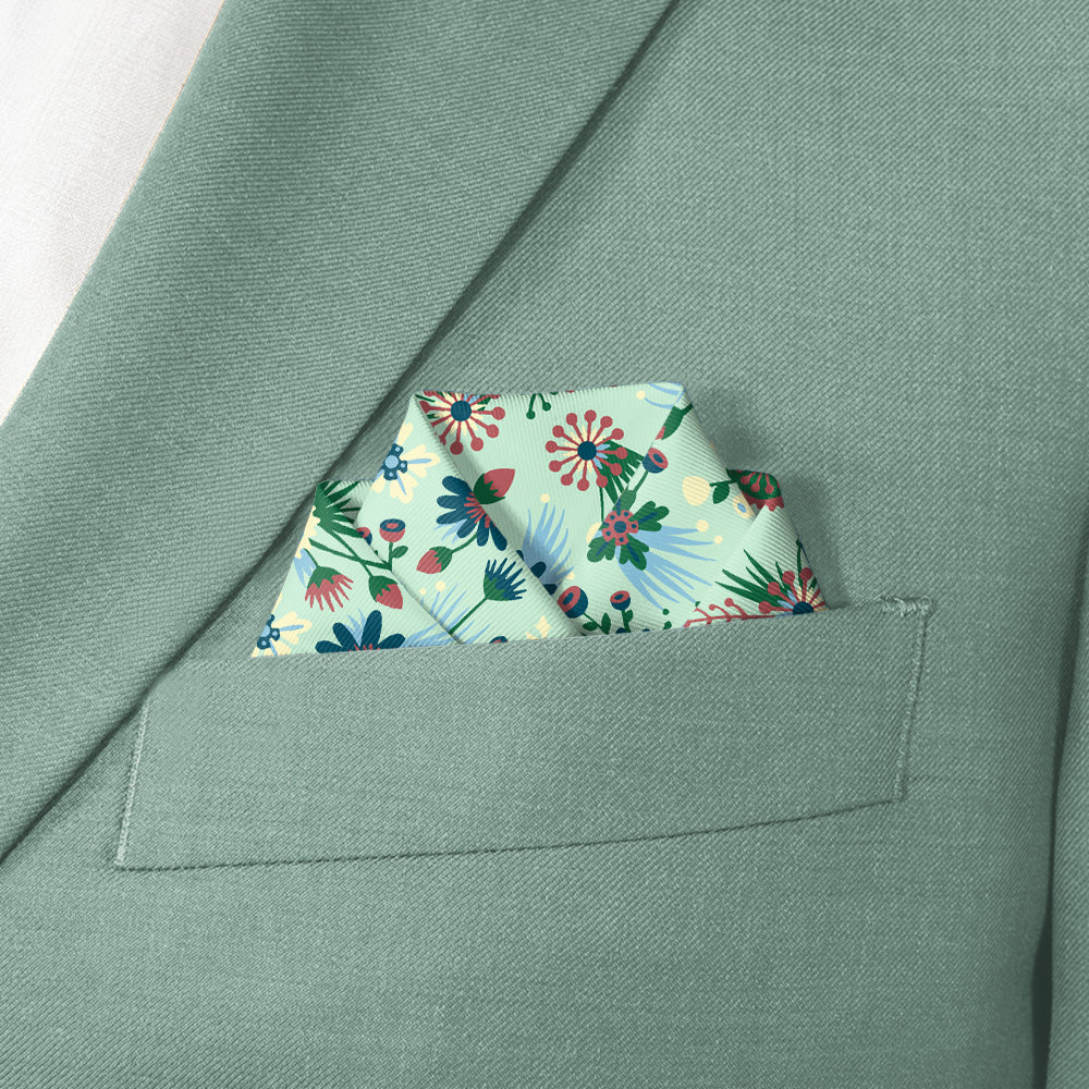 We print all our pocket squares on a recycled twill fabric made from plastic bottles that we have milled specifically for our products. We print our pocket squares on a single side and finish the edges with a fine purl edge. The back side of the pocket square will be unprinted.