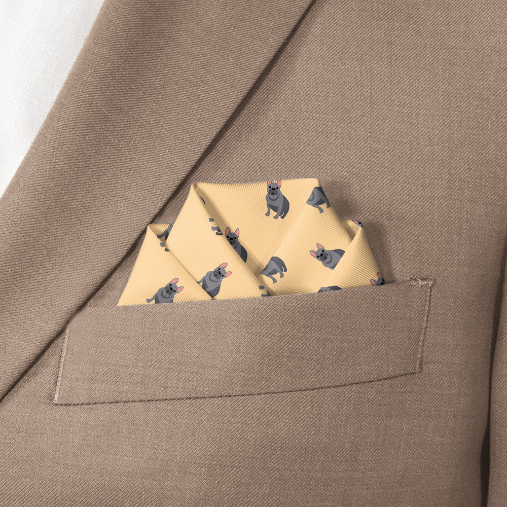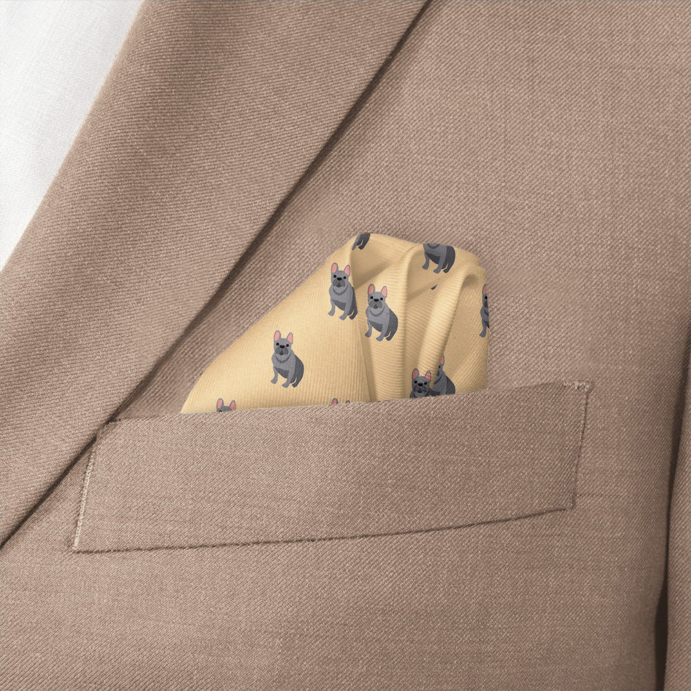 You can recognize a French Bulldog by its large, bat-like ears. The French Bulldog pocket square makes a great gift for fans of these playful pooches.
