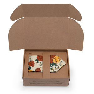 Sustainably sourced thoughtful packaging ready for gifting with 100% recycled and recyclable paper printed with vegetable inks.
