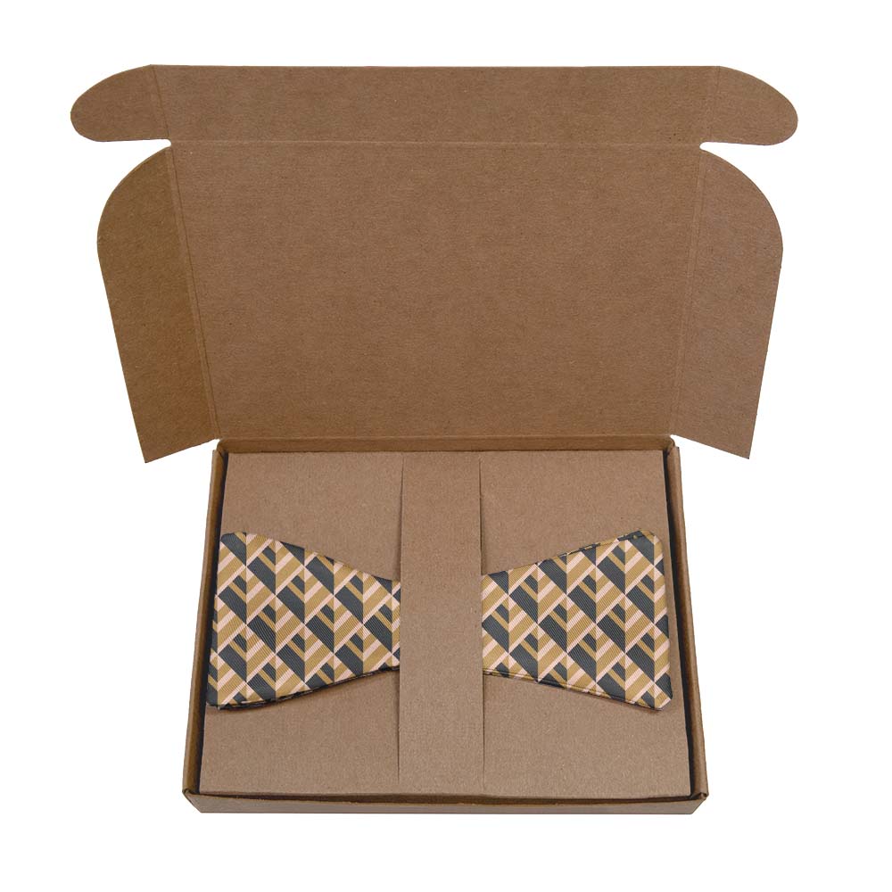 These geometric bow ties have a sense of timeless luxury. Layers of boldly shaded diamond shapes create an opulent Prohibition Era pattern that's right at home today. The classic design and rich visual texture make them perfect event or wedding ties, especially for vintage or Gatsby themes.