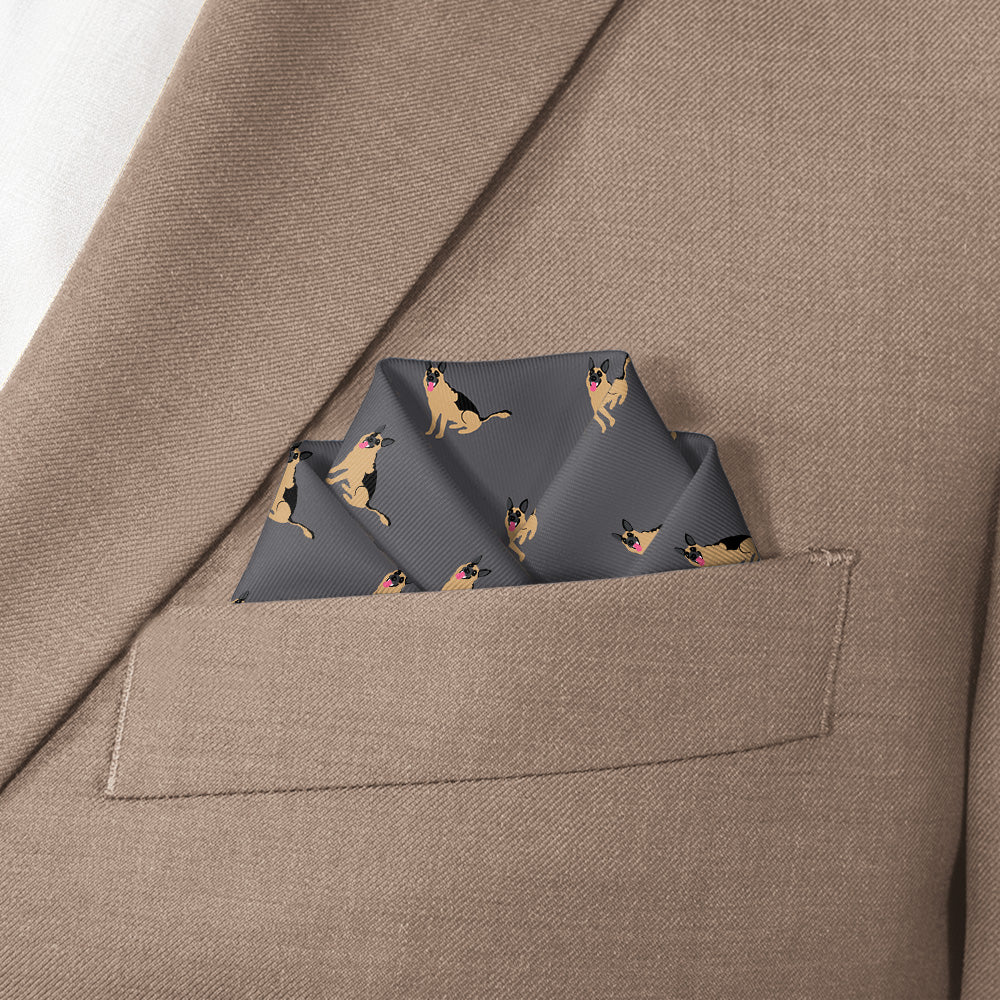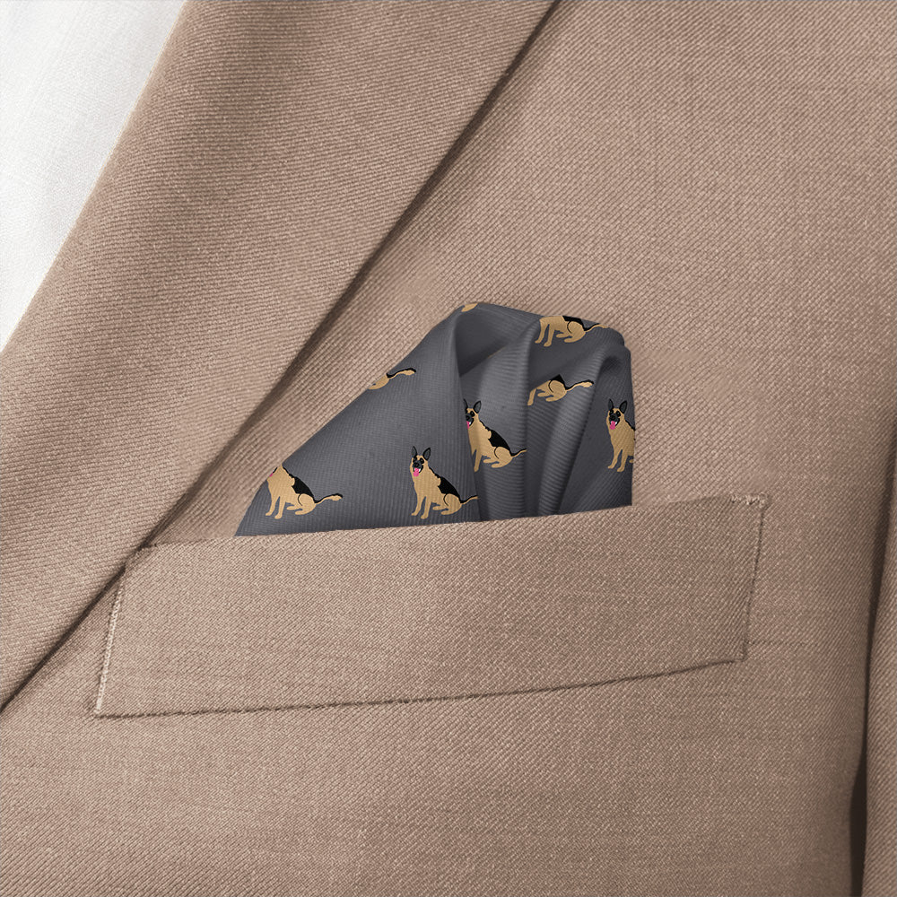 Intelligent and courageous, German Shepherds work as hard as they play. The German Shepherd pocket square highlights the distinctive markings of these popular dogs.
