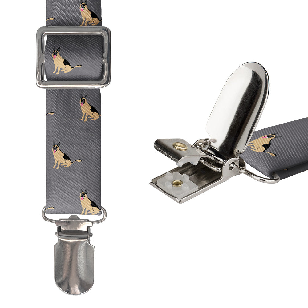 Intelligent and courageous, German Shepherds work as hard as they play. The German Shepherd suspenders highlight the distinctive markings of these popular dogs.