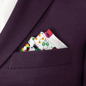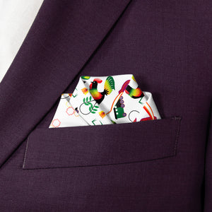 We print all our pocket squares on a recycled twill fabric made from plastic bottles that we have milled specifically for our products. We print our pocket squares on a single side and finish the edges with a fine purl edge. The back side of the pocket square will be unprinted.