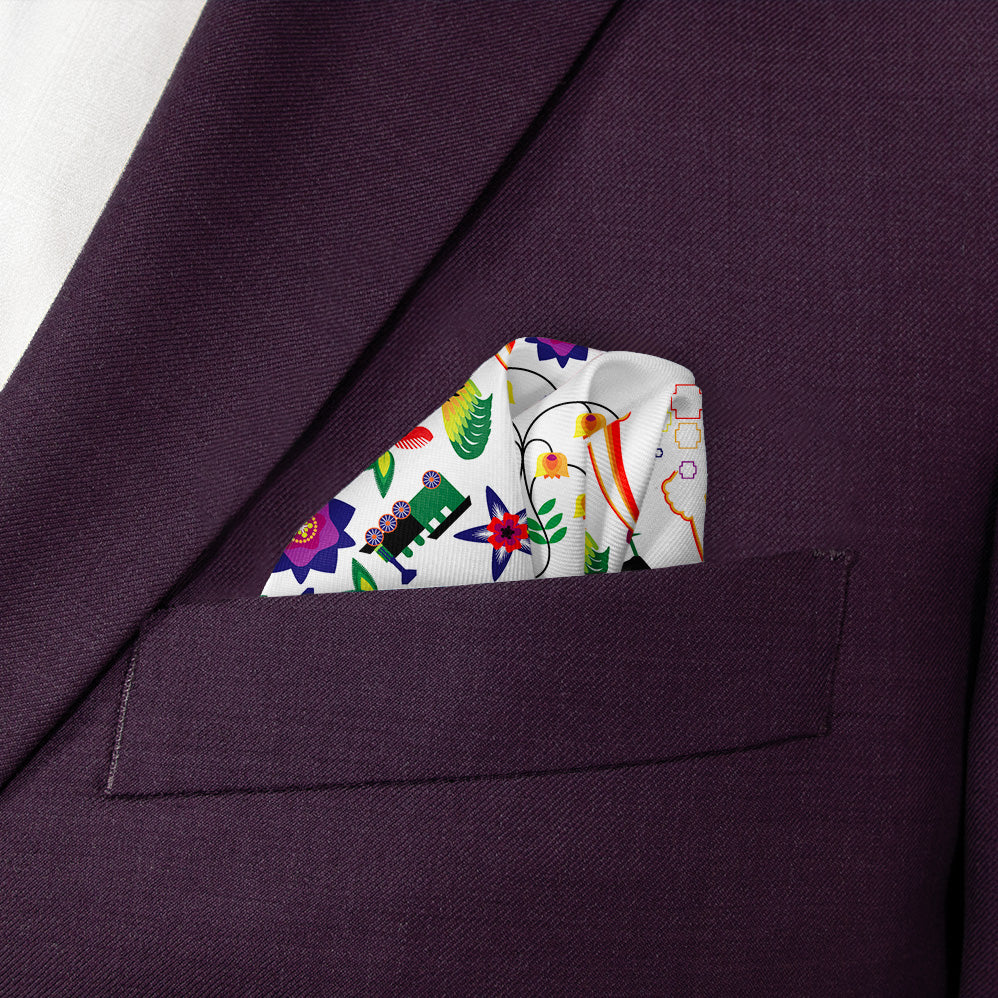 Founded in the late 1800s, Globeville was a tightly knit community of immigrants from Eastern Europe looking for work in Colorado’s mining industry. This pocket square pattern inspiration comes from the aesthetic of traditional Polish art combined with icons that represents its close-knit community and labor with the smelting industry.