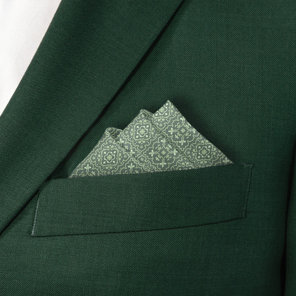 We print all our pocket squares on a recycled twill fabric made from plastic bottles that we have milled specifically for our products. We print our pocket squares on a single side and finish the edges with a fine purl edge. The back side of the pocket square will be unprinted.