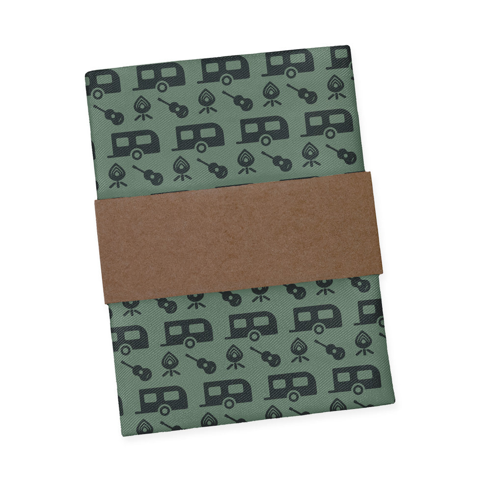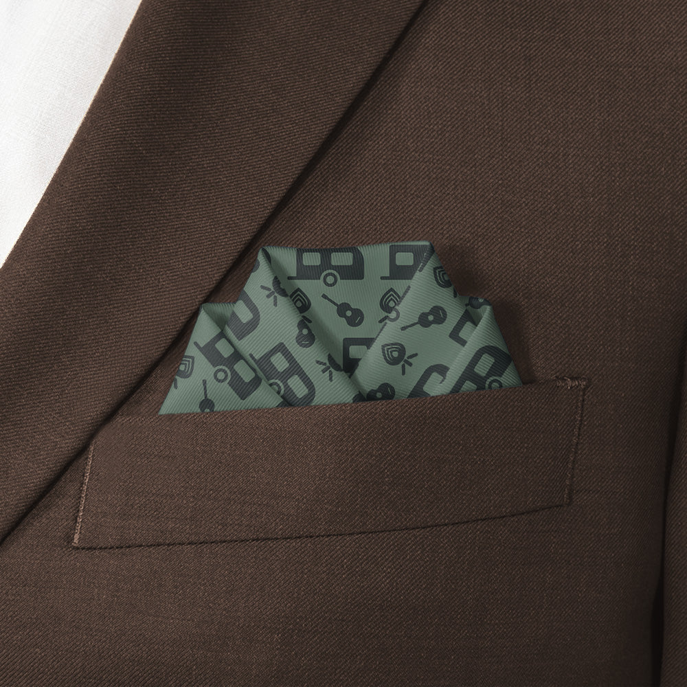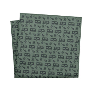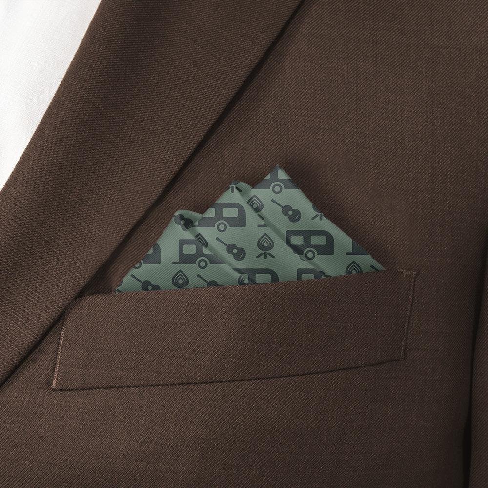 Who wouldn't be a happy camper in this pocket square? Travel trailers, guitars, and campfires highlight the roaming spirit of the Happy Camper pocket square. Wear it to work to remember your weekend adventures, or tuck it in your travel trailer so you're ready for a night out.