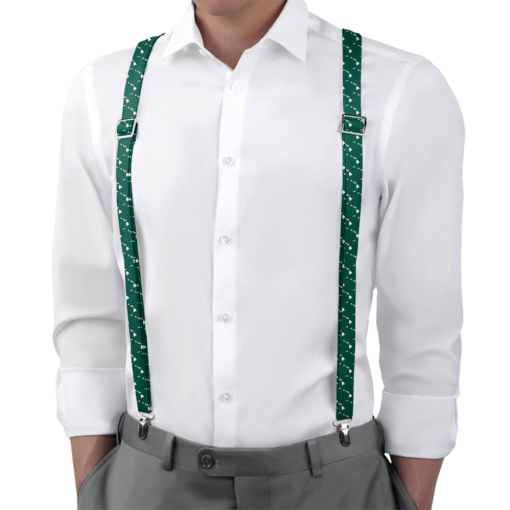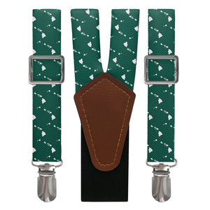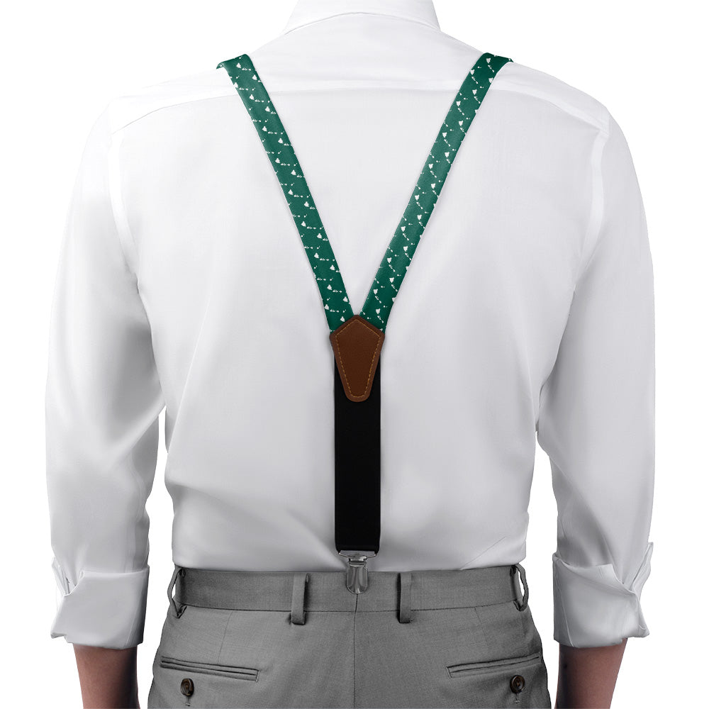Printed fabric straps are 1-inch wide and secured to an elastic rear strap with vegan leather Y-back to allow the suspenders to move with you and extend as you bend. We use silver alligator pant clips that feature a special mechanism to ensure the suspenders clamp securely to pants.