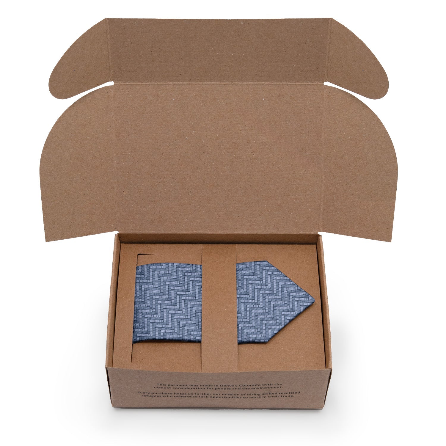 We print all our neckties on a high quality twill fabric made from recycled plastic bottles that we have milled specifically for our ties. Our recycled poly twill fabric has the soft sheen and feel of a semi-matte silk.