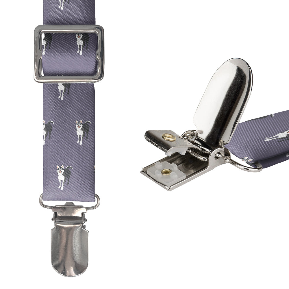 Bred for pulling sleds, Huskies are known for their strength and beauty. Fans of these snow-loving dogs will love the Husky suspenders.