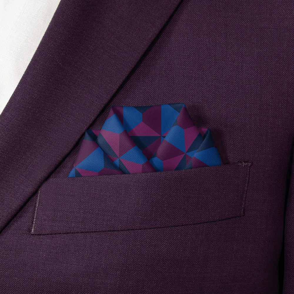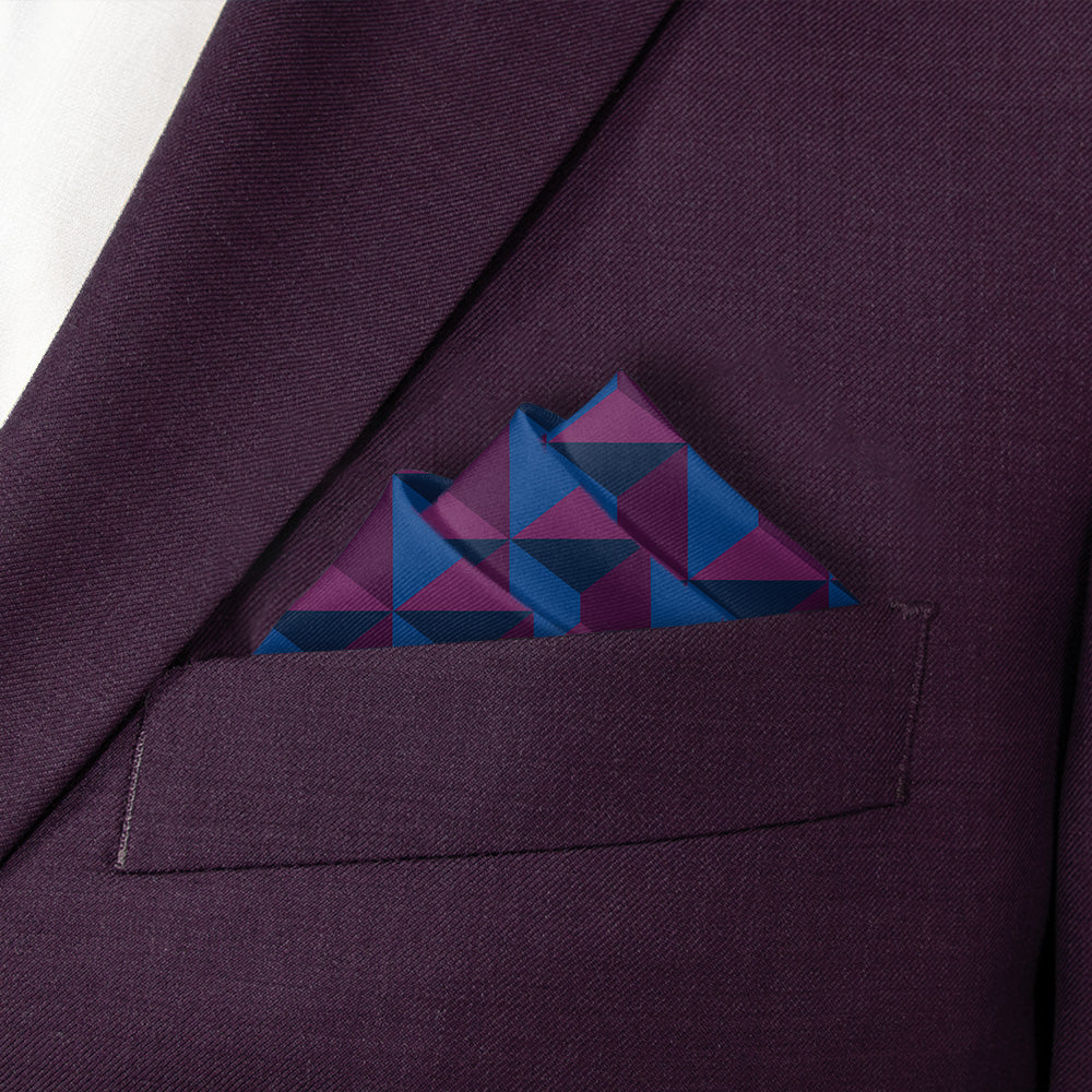 We print all our pocket squares on a recycled twill fabric made from plastic bottles that we have milled specifically for our products. We print our pocket squares on a single side and finish the edges with a fine purl edge. The back side of the pocket square will be unprinted.