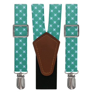 Printed fabric straps are 1-inch wide and secured to an elastic rear strap with vegan leather Y-back to allow the suspenders to move with you and extend as you bend. We use silver alligator pant clips that feature a special mechanism to ensure the suspenders clamp securely to pants.