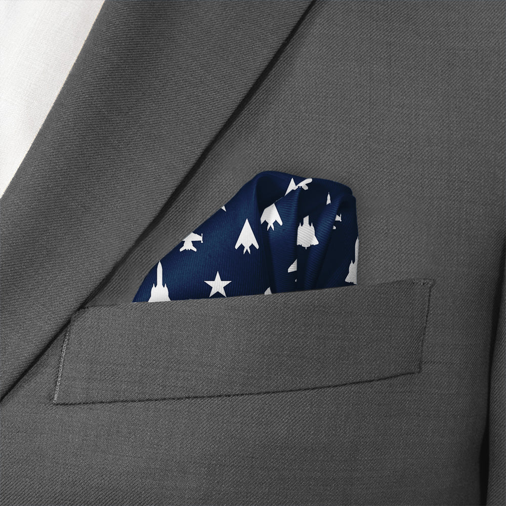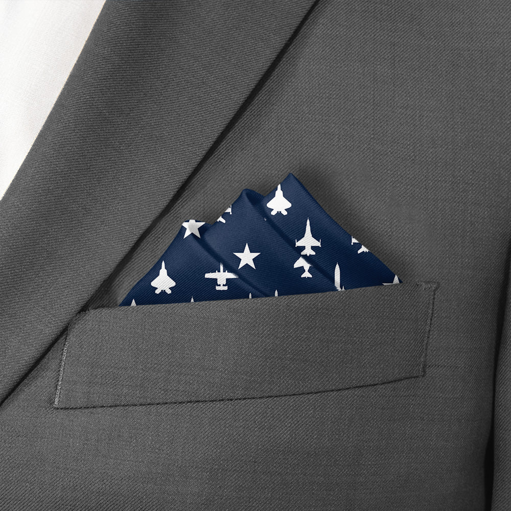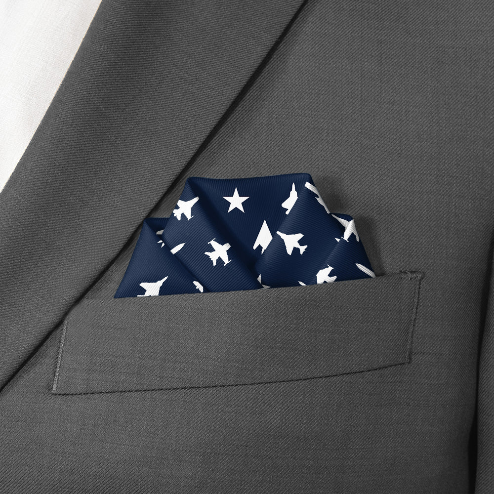 Planes of all shapes and sizes bring supersonic style to our iconic jets pattern. Air Force personnel and flight enthusiasts alike will love this minimalist fighter jets pocket square.