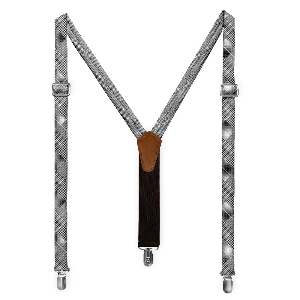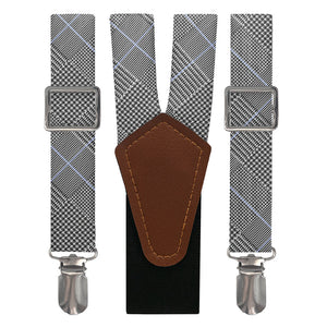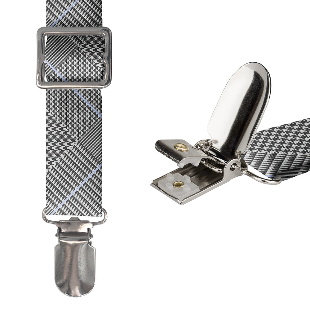 Our version of a glen check, this is a classic menswear pattern worn by Presidents and distinguished gentlemen throughout history. Our customizable colors let you design your own Jezebel Plaid suspenders, creating a plaid in precisely the colors you need for your wedding or groomsmen suspenders.