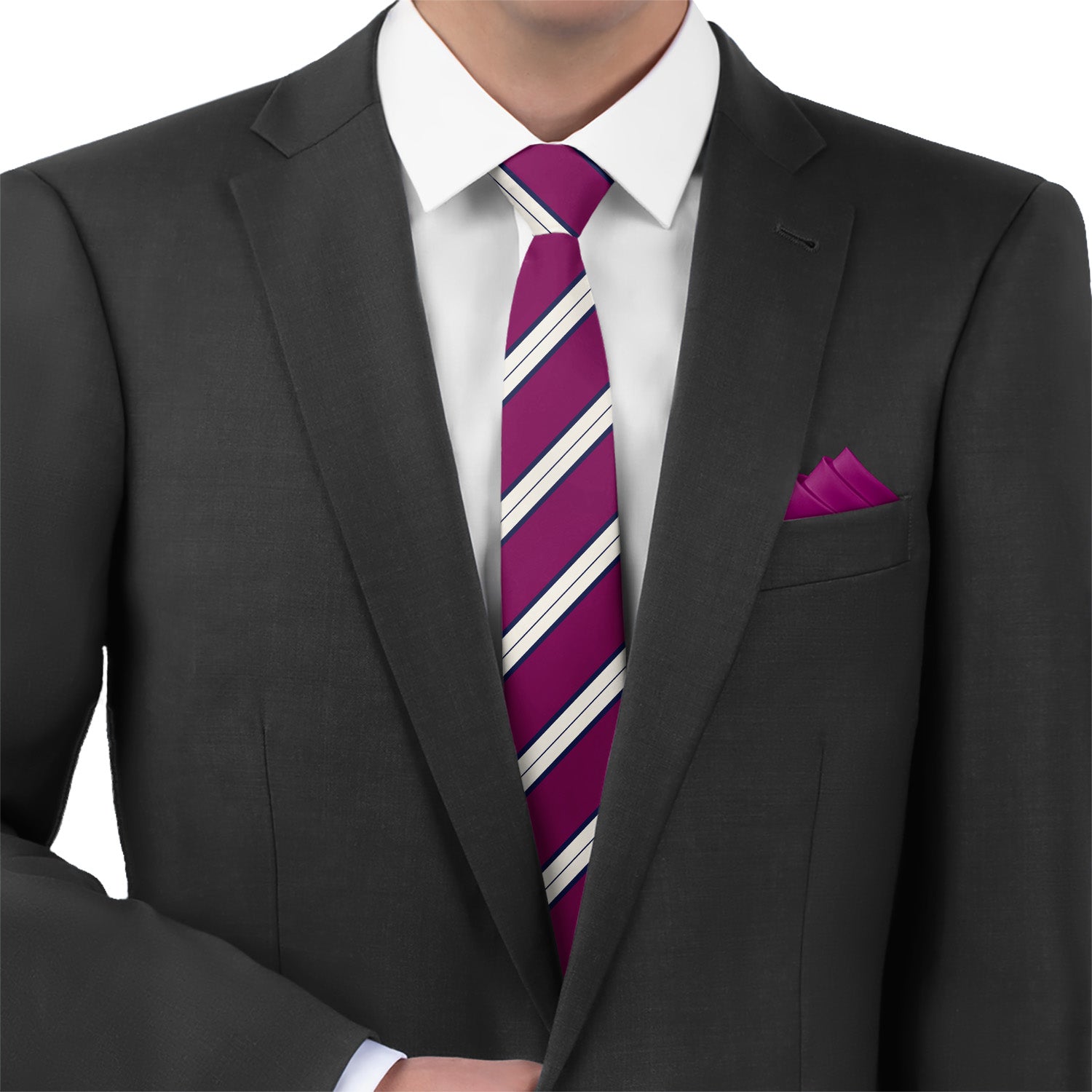 One of our most popular patterns, this three color bar stripe features contrasting thin stripes down the center and flanking both sides of the main stripe.