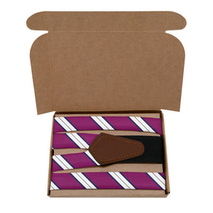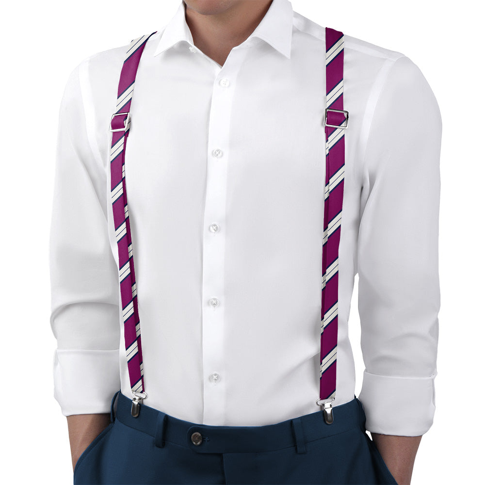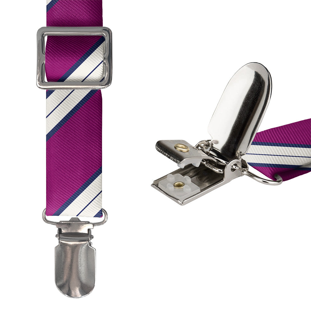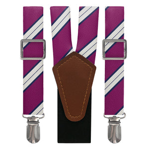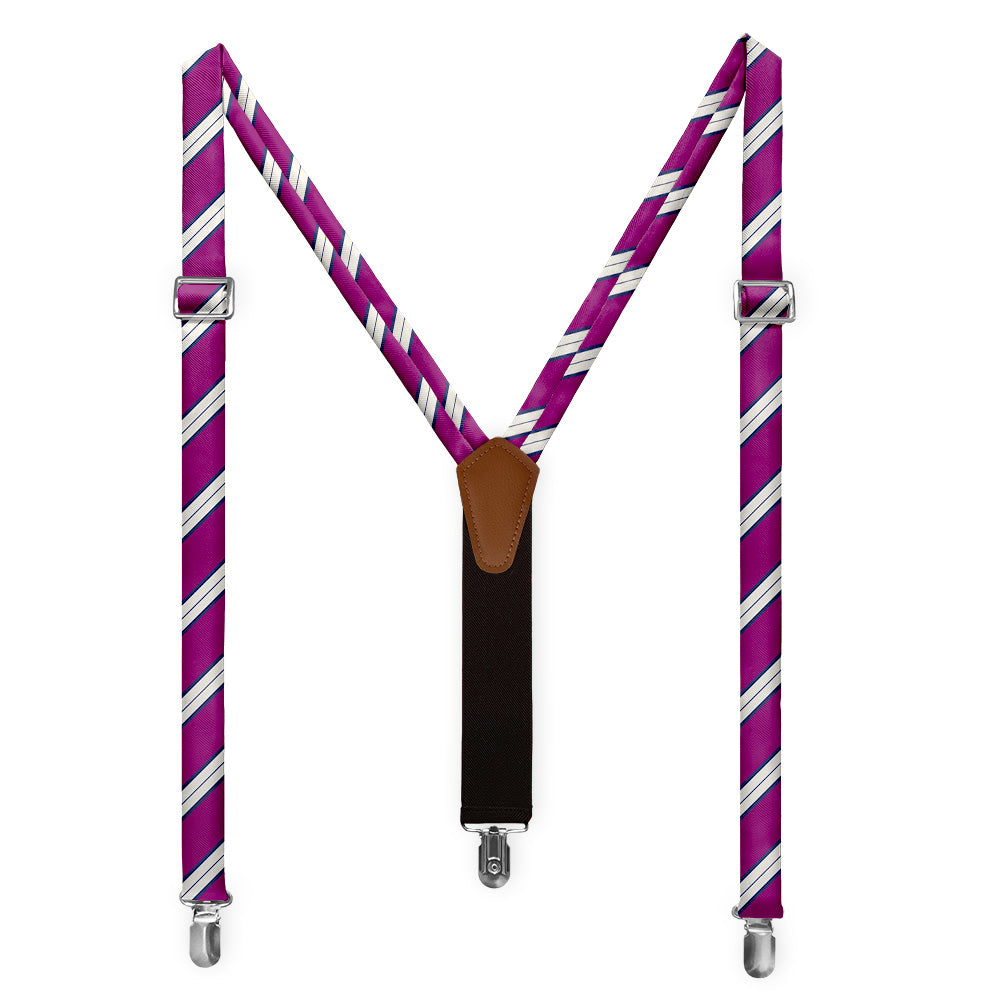 One of our most popular patterns, this three color bar stripe features contrasting thin stripes down the center and flanking both sides of the main stripe. Customize the colors of the Kalamath Stripe suspenders to fit any occasion or outfit.