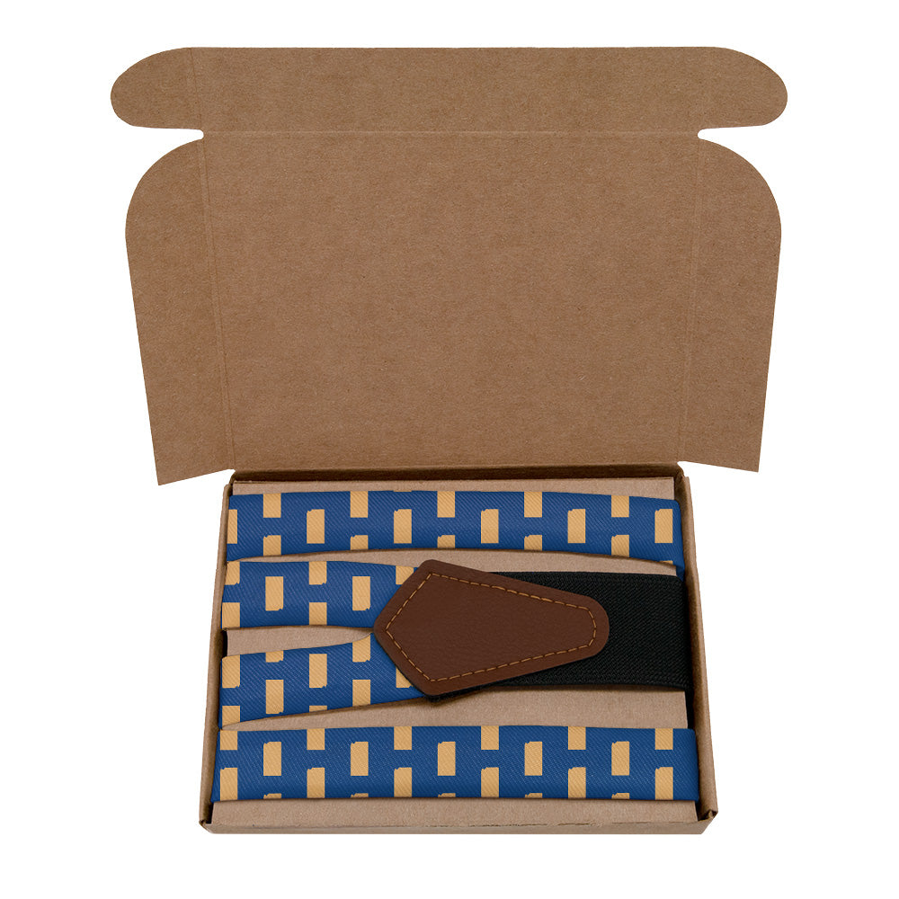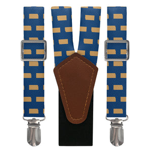 Printed fabric straps are 1-inch wide and secured to an elastic rear strap with vegan leather Y-back to allow the suspenders to move with you and extend as you bend. We use silver alligator pant clips that feature a special mechanism to ensure the suspenders clamp securely to pants.