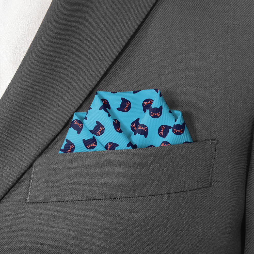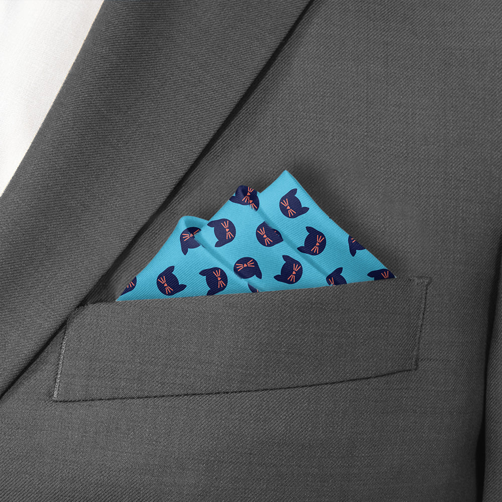 This pocket square is purr-fect for cat lovers! The minimalist Kitty Cats design adds a touch of whimsy to any occasion. The 3-tone design on this cat pocket square is easy to customize in any colors you choose.