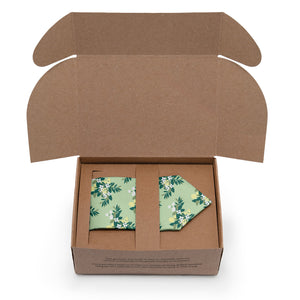 Sustainably sourced thoughtful packaging ready for gifting with 100% recycled and recyclable paper printed with vegetable inks.