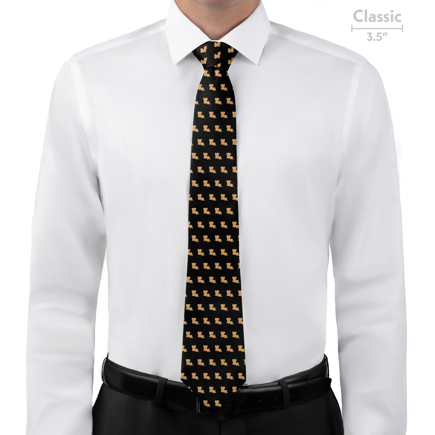 The Louisiana State Outline necktie offers a fun tribute to the Pelican State with a repeating motif of the state's outline. Show your pride for this state's unique culture and history with this stylish tie.