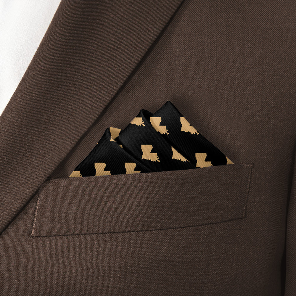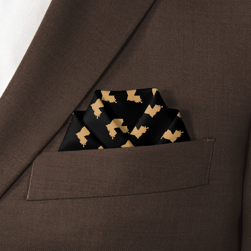 The Louisiana State Outline pocket square offers a fun tribute to the Pelican State with a repeating motif of the state's outline. Show your pride for this state's unique culture and history with this stylish pocket square.