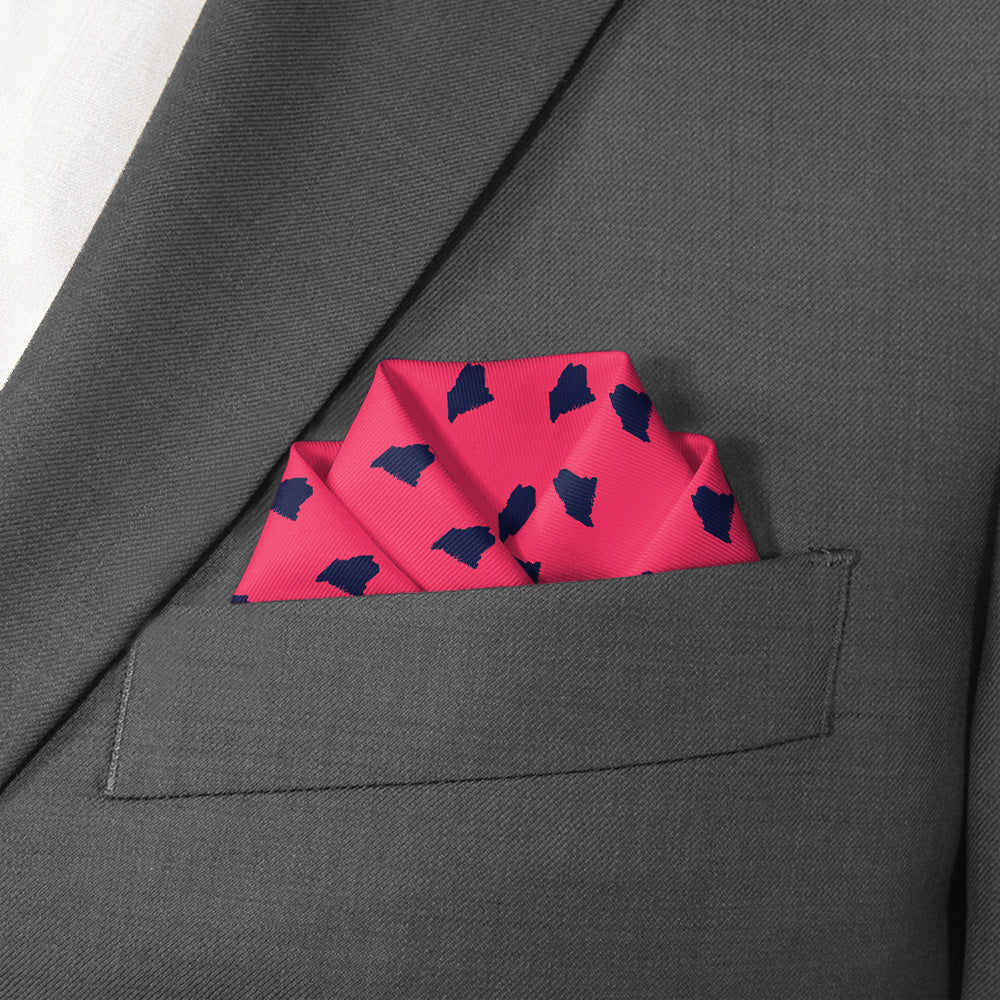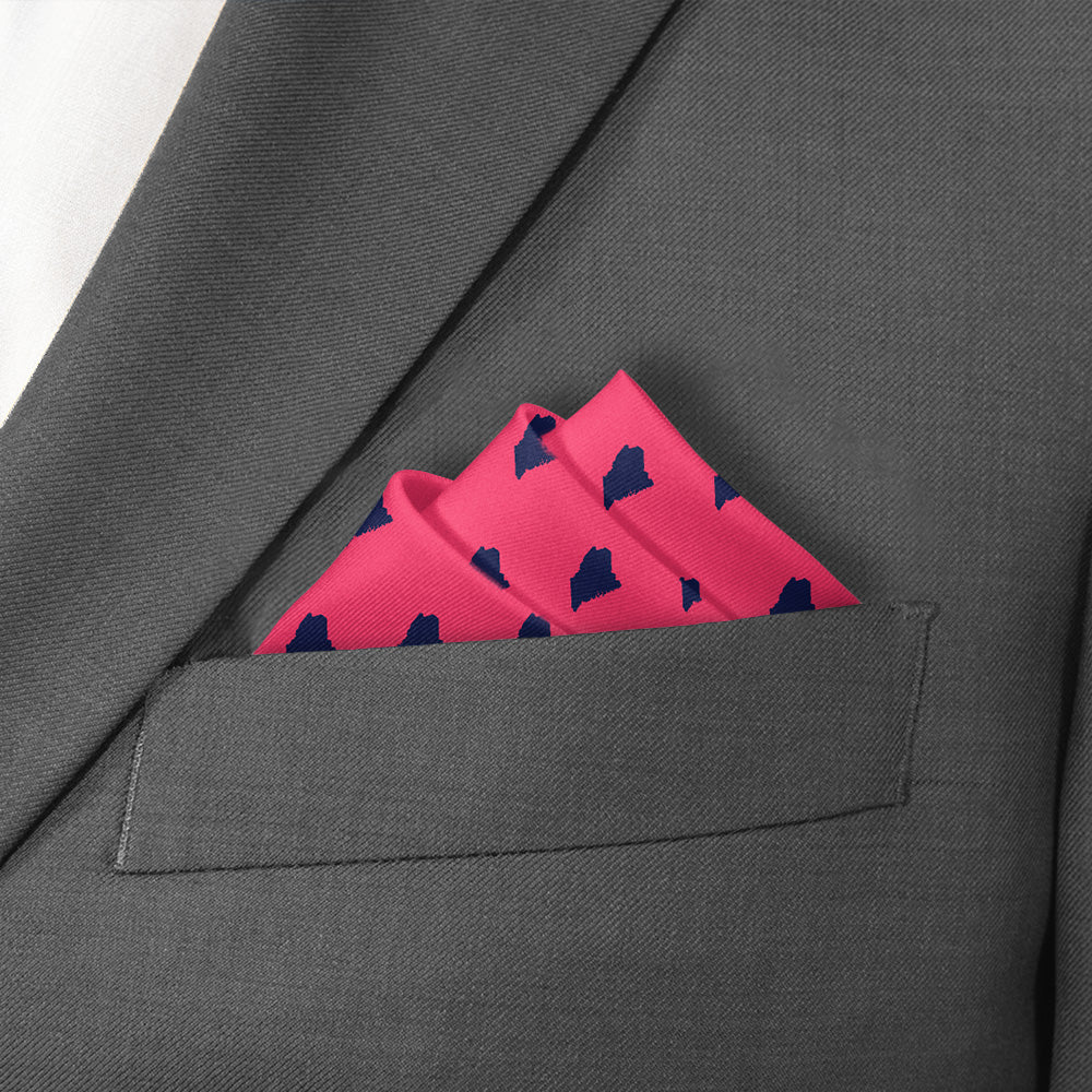 Show the world that you're a Mainer with the Maine State Outline pocket square. This customizable pocket square features a repeating outline of the state of Maine.