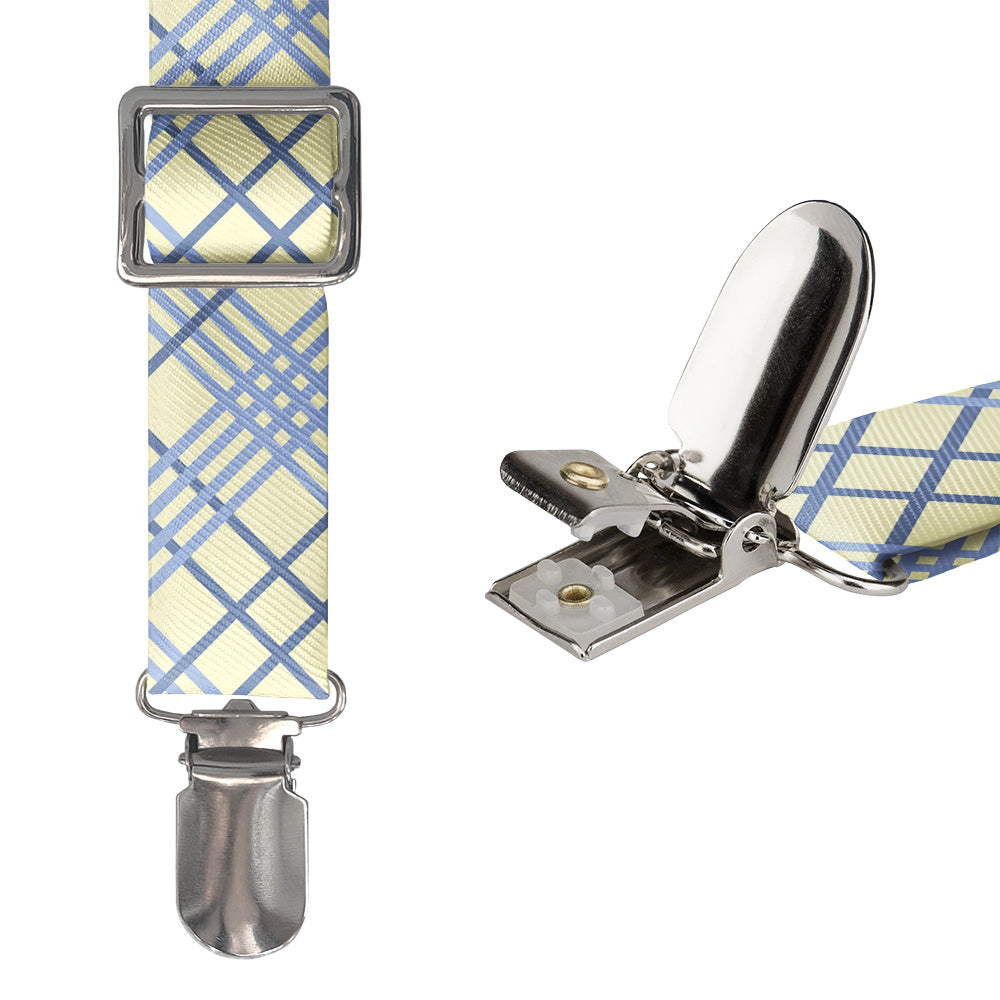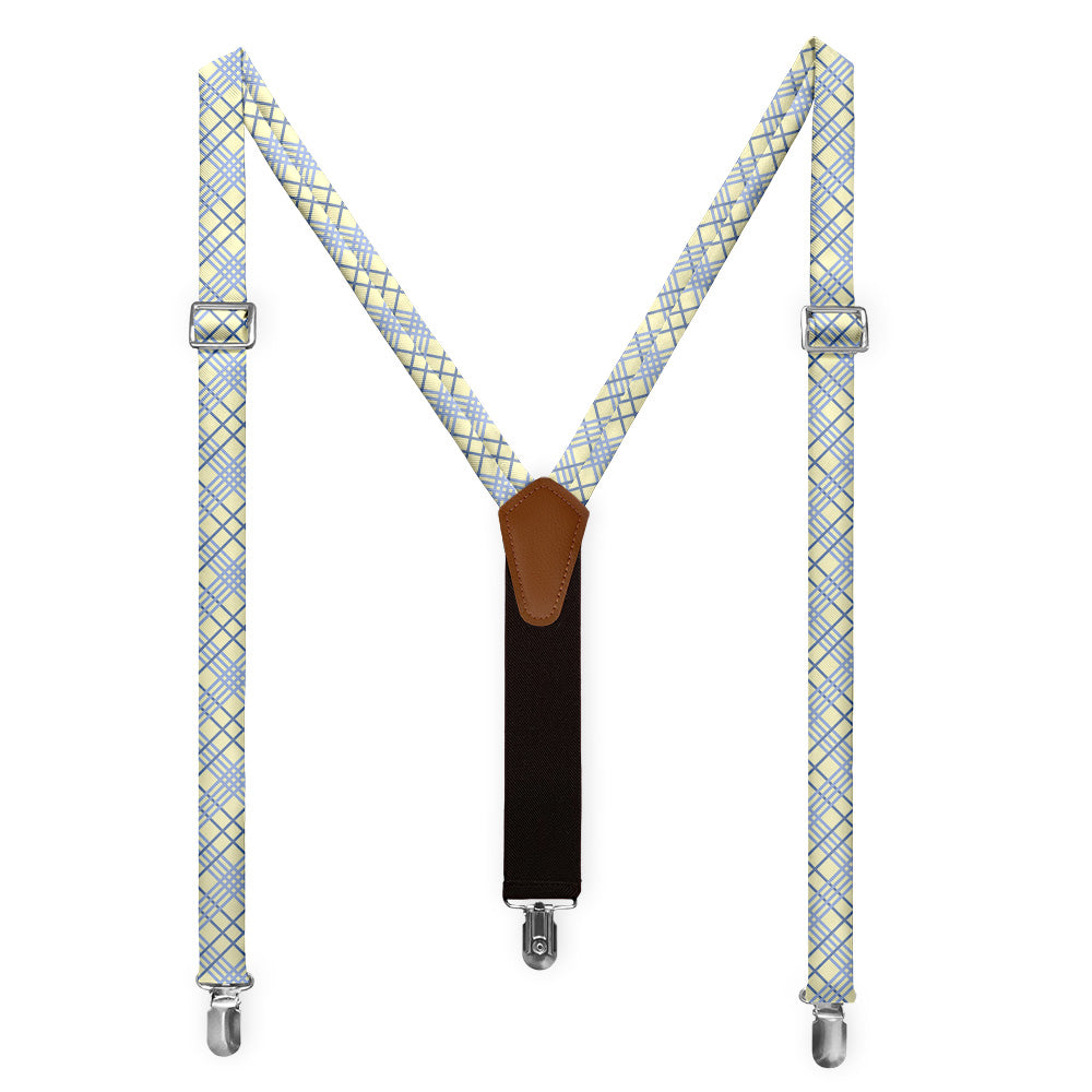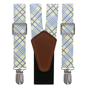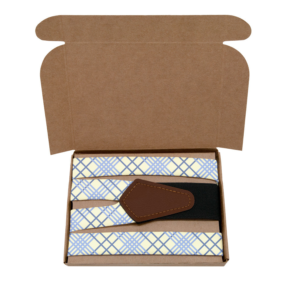 Sleek intersecting lines in a city-like grid create this appealing three color plaid. Ideal for groomsmen or groomswomen, the colors in these plaid suspenders are entirely customizable. You can design your own suspenders to match your wedding theme, your school colors, or even your favorite sports team.