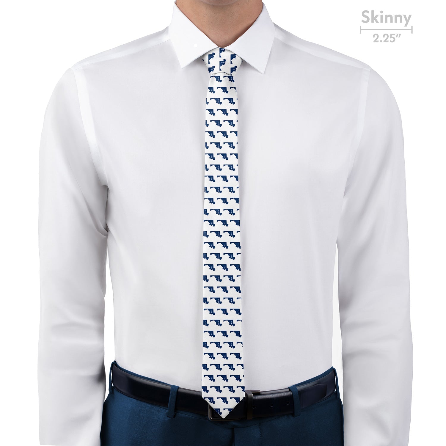 Marylanders will love this unique customizable tie! The Maryland State Outline necktie features a repeating outline of the Free State.
