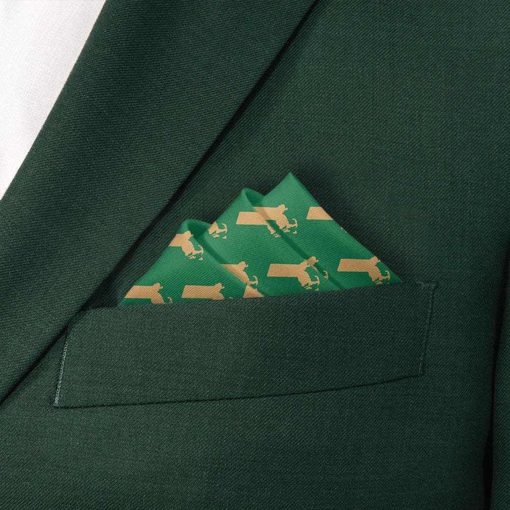 Massachusetts Proud! The customizable Massachusetts State Outline pocket square features a repeating outline of the Bay State.