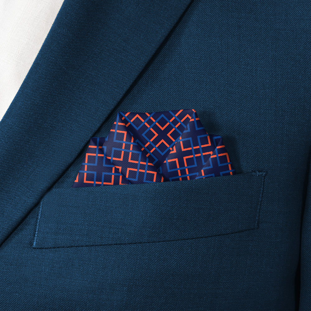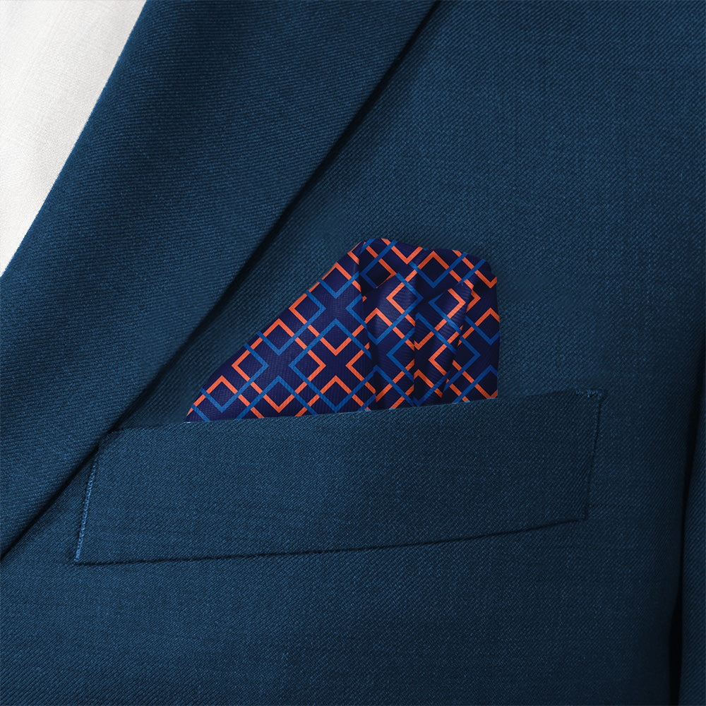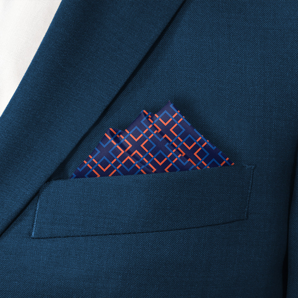 We print all our pocket squares on a recycled twill fabric made from plastic bottles that we have milled specifically for our products. We print our pocket squares on a single side and finish the edges with a fine purl edge. The back side of the pocket square will be unprinted.