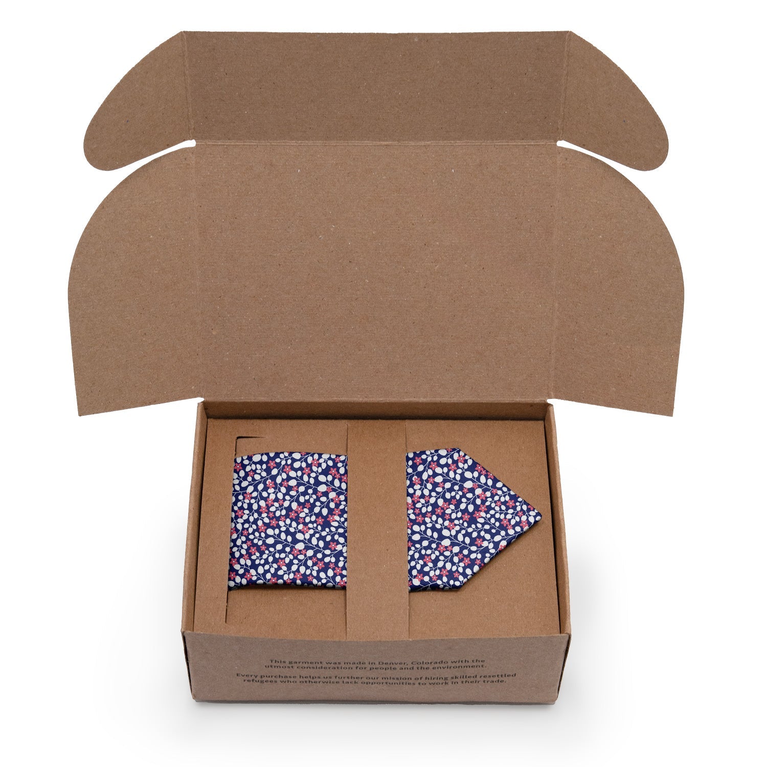 And you will feel as good as you look knowing that our ties are made from eco-friendly fabric and sewn in Denver by refugees who earn a living wage for their work. That's style with substance! This delicate floral tie can soften the severity of a black shirt and provide an understated contrast to any classic menswear look.