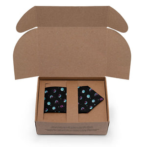 The vibrant moons aren't the only futuristic feature of this astronaut tie -- our innovative manufacturing process uses recycled polyester milled from plastic water bottles and eco-friendly dye sublimation printing.