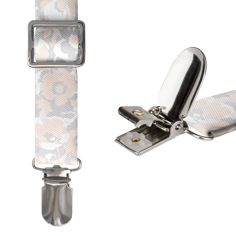 These floral suspenders feature anemone blossoms, traditionally said to protect against evil and disease. We can't guarantee Mod Floral suspenders will do the job, but they still make a thoughtful gift for someone who needs a bit of protection! The eye-catching tinted floral blossoms can be customized to match any color scheme. They are perfect for groomsmen or wedding suspenders.