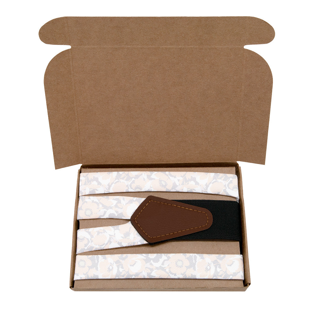 Sustainably and ethnically crafted in Colorado, these eco-friendly suspenders let you dress according to your values. For a sharp monochromatic look, pair these muted Mod Floral suspenders with darker shades of the same colors.