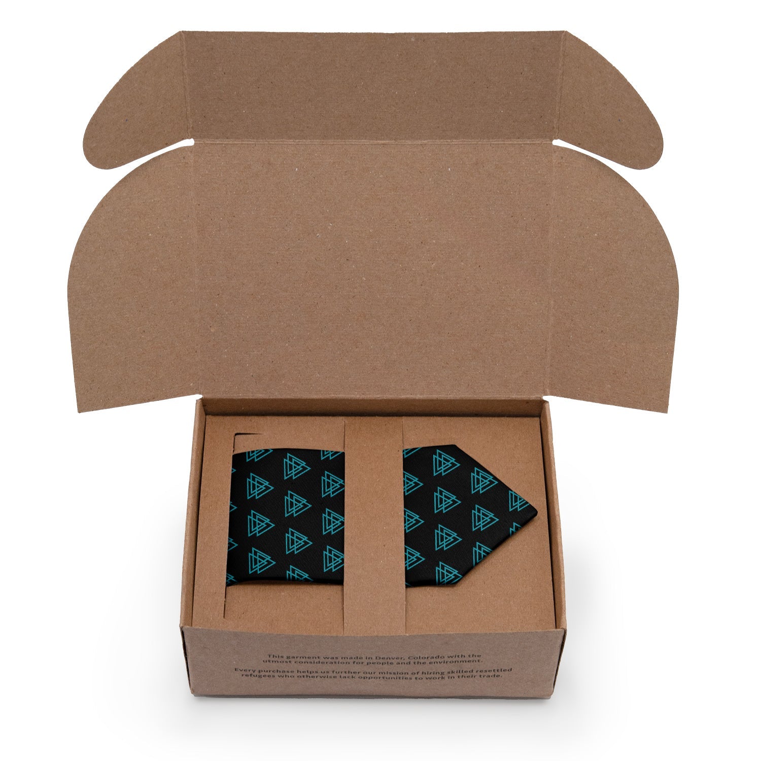 We print all our neckties on a high quality twill fabric made from recycled plastic bottles that we have milled specifically for our ties. Our recycled poly twill fabric has the soft sheen and feel of a semi-matte silk.