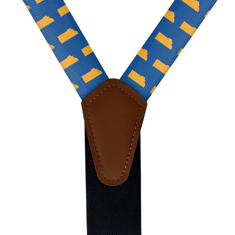 Printed fabric straps are 1-inch wide and secured to an elastic rear strap with vegan leather Y-back to allow the suspenders to move with you and extend as you bend. We use silver alligator pant clips that feature a special mechanism to ensure the suspenders clamp securely to pants.