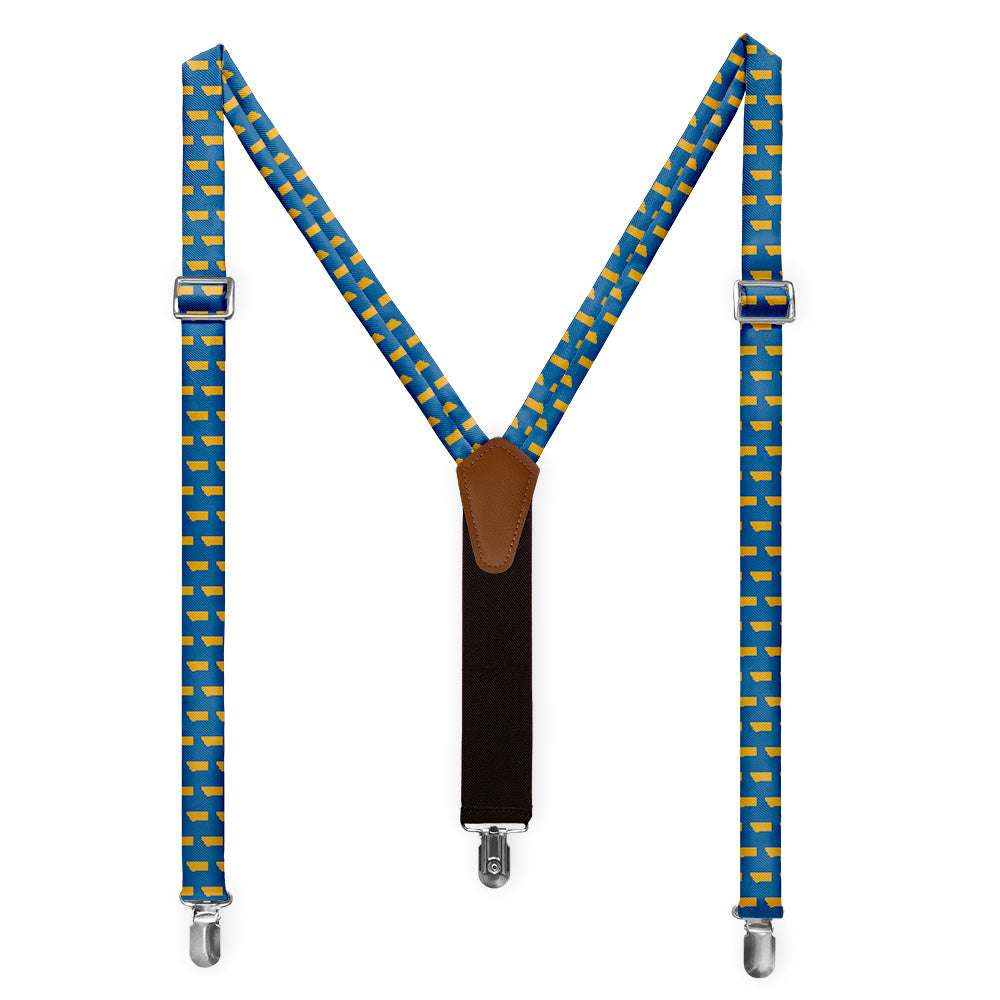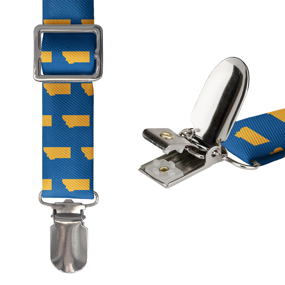 A repeating outline of the treasure state makes these suspenders perfect for any Montanan! The customizable Montana State Outline suspenders show the world you're from Big Sky Country.