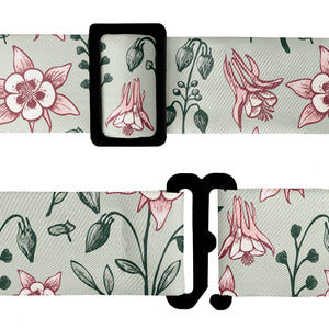 The Mountain Columbine bow tie features a lively hand-drawn floral print inspired by the alpine wildflower of the same name. With its whimsical blooms and botanical details, this design brings a fresh, outdoorsy charm to your ensemble. Perfect for weddings, spring events, or anyone who loves nature-inspired style with a playful twist.