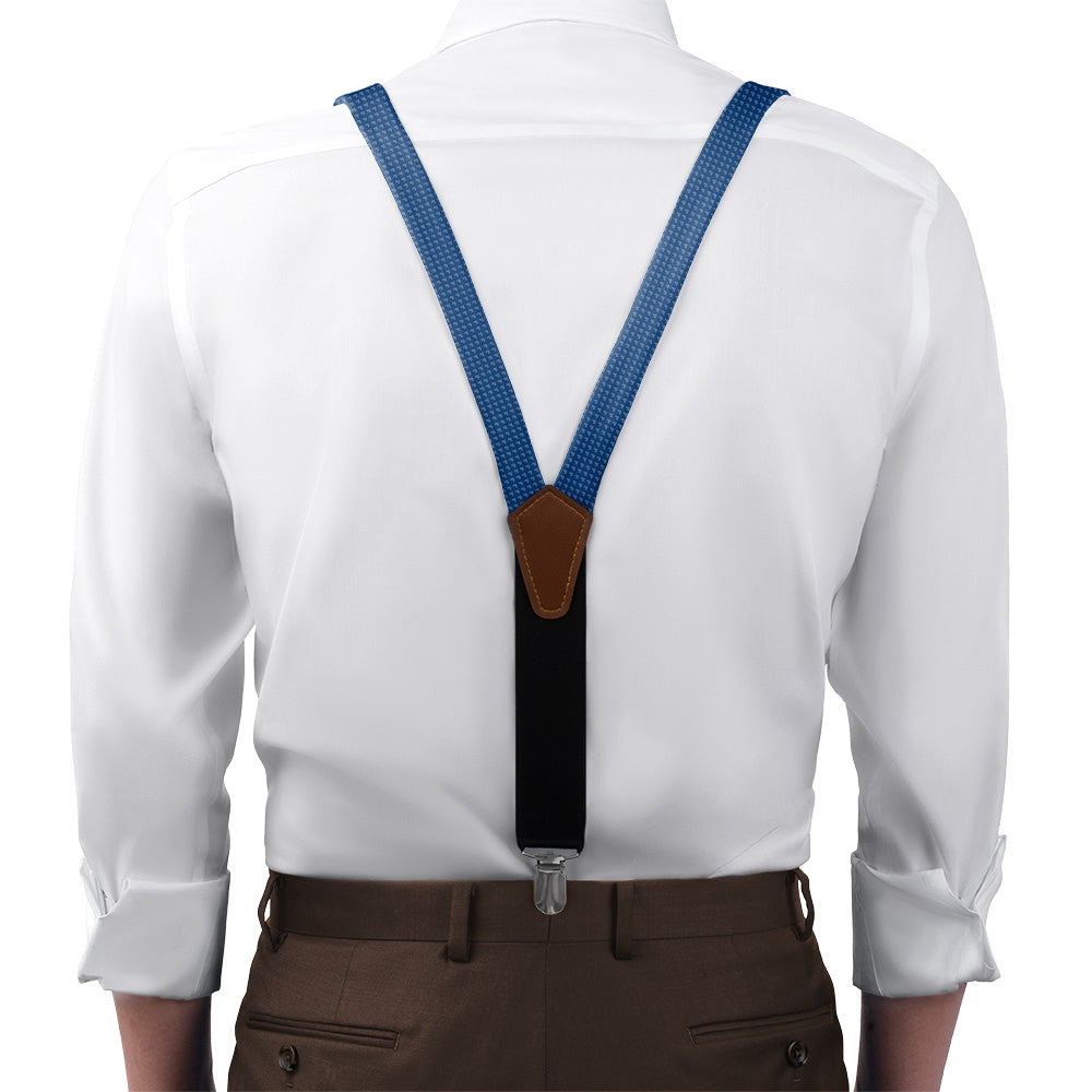 A very subtle geometric pattern which, like the bird's eye pattern, is made up of tiny repeated shapes that still allow the background color to remain dominant to the naked eye. Customize the Nailhead suspenders in the 2 colors of your choice today.