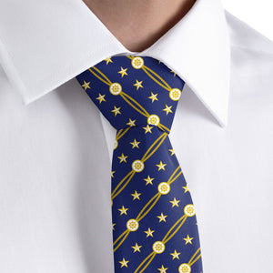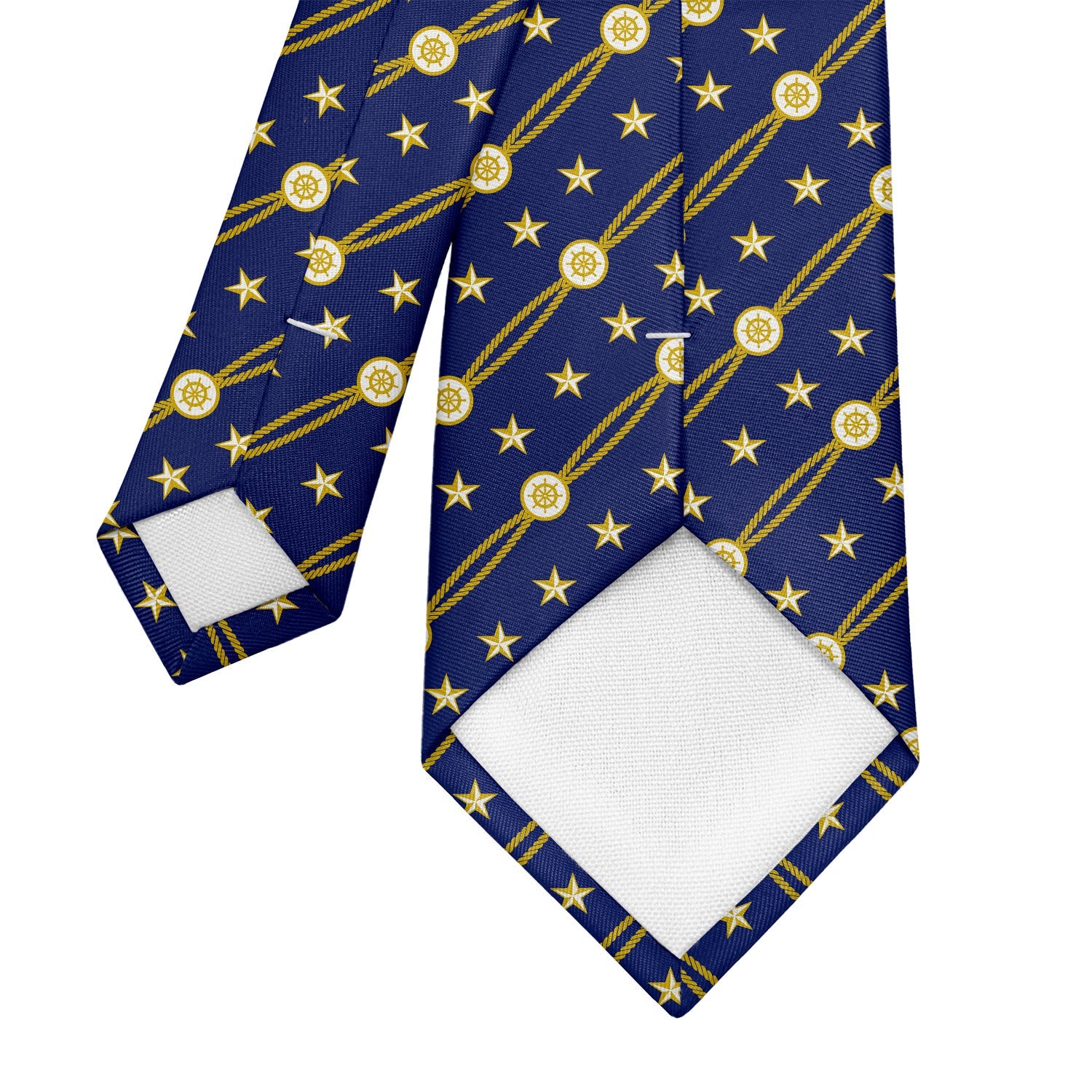 This Navy tie features seaworthy stripes made out of gold braid, ship's wheels, and stars. The Nautical Stripe necktie is perfect for sailors.
