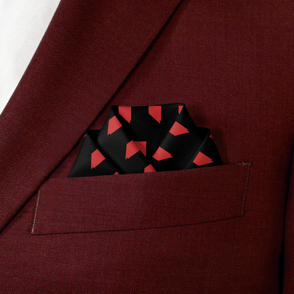 We print all our pocket squares on a recycled twill fabric made from plastic bottles that we have milled specifically for our products. We print our pocket squares on a single side and finish the edges with a fine purl edge. The back side of the pocket square will be unprinted.
