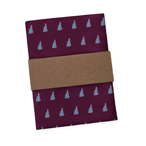 We print all our pocket squares on a recycled twill fabric made from plastic bottles that we have milled specifically for our products. We print our pocket squares on a single side and finish the edges with a fine purl edge. The back side of the pocket square will be unprinted.