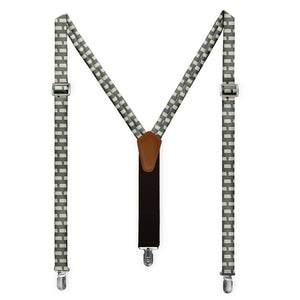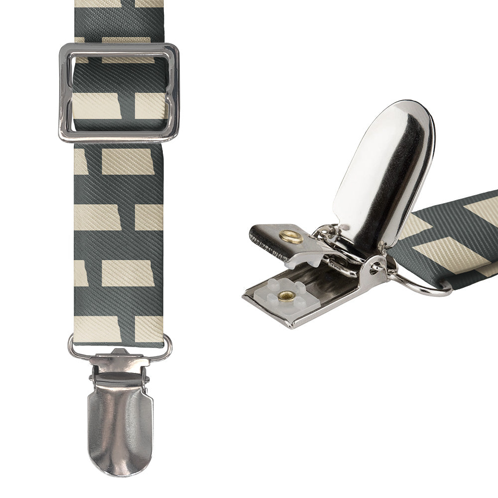 Show the world your Peace Garden State pride with the North Dakota State Outline suspenders. These customizable suspenders feature a repeating outline of the state of North Dakota.