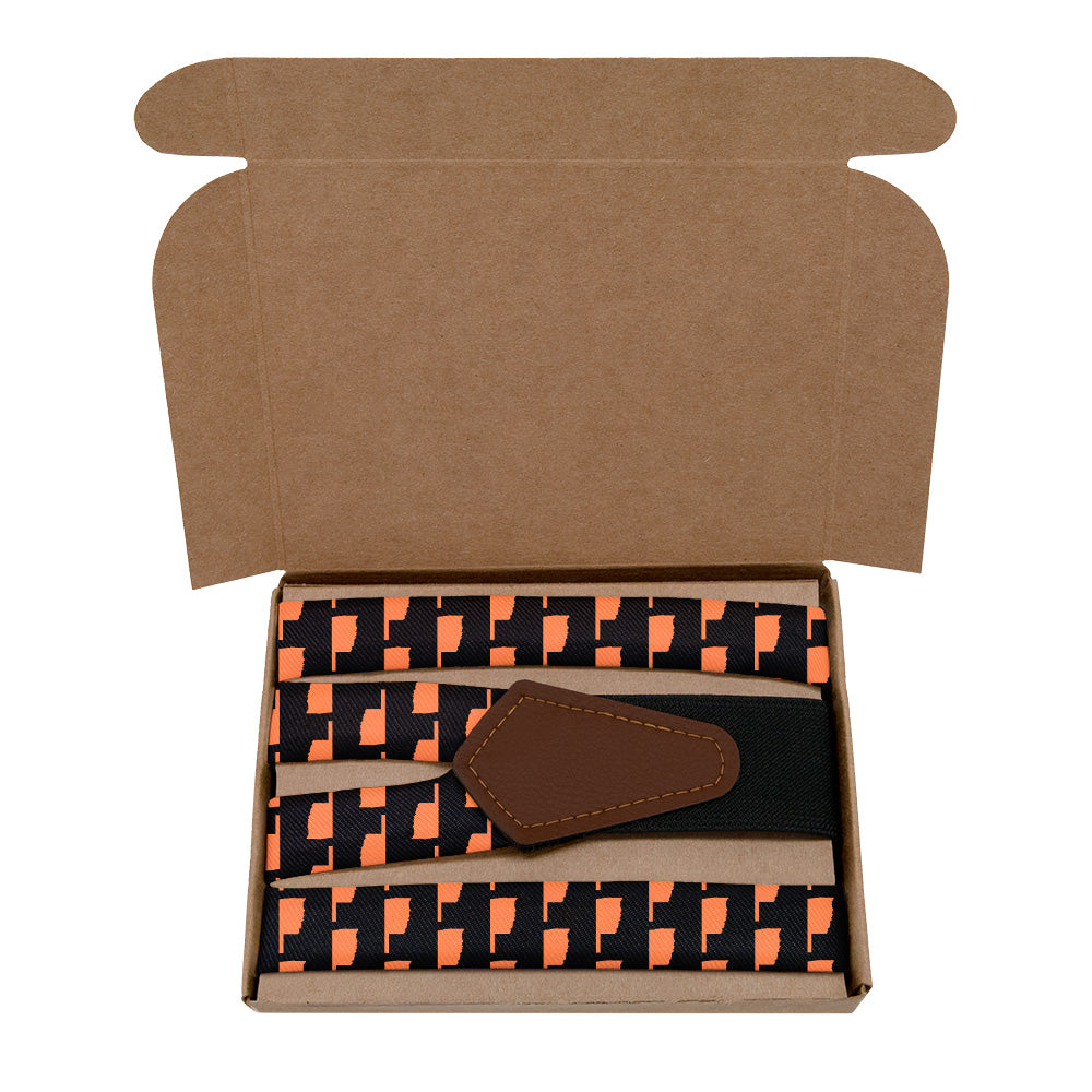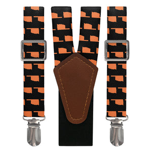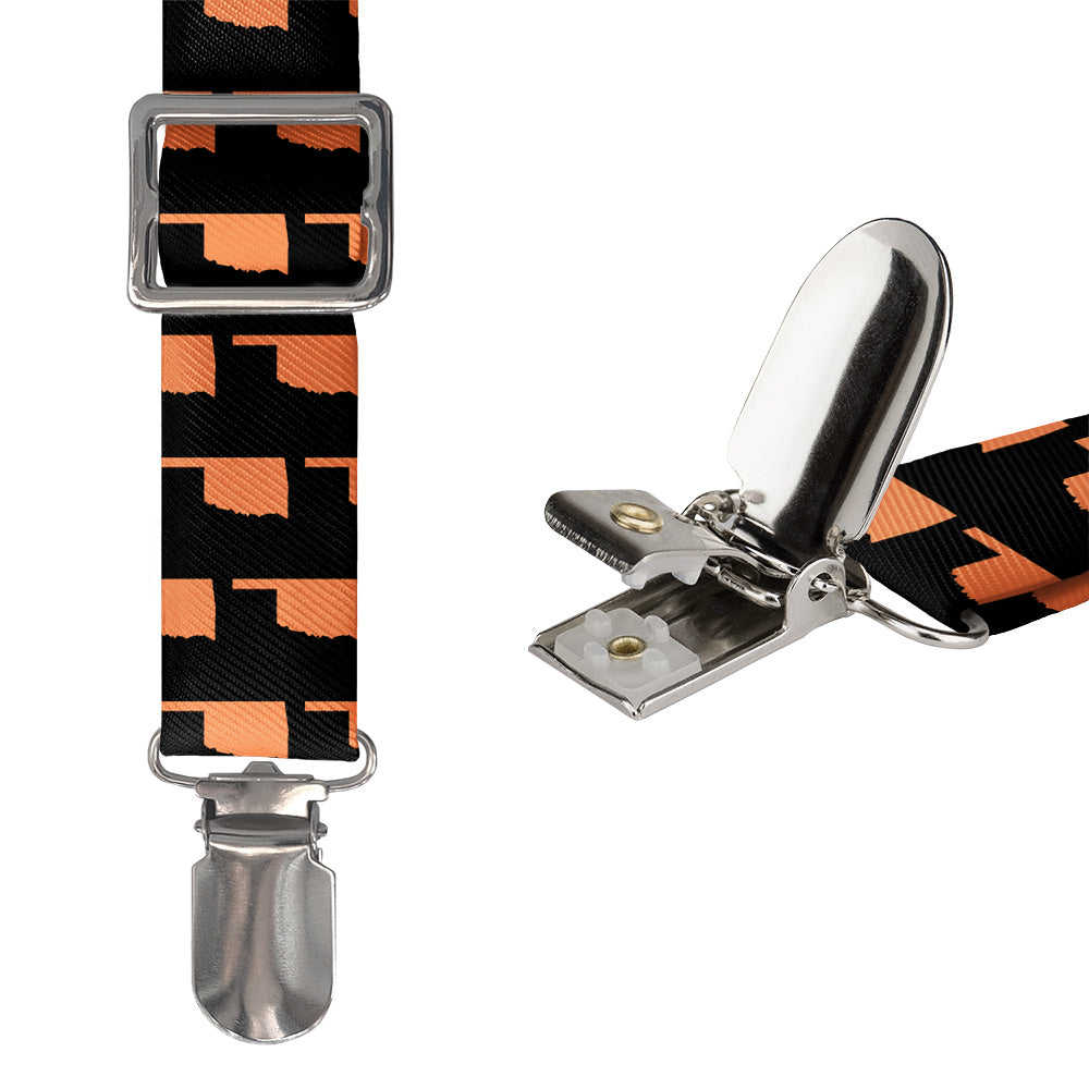 If you're fixin' to show your love for the Sooner State, the Oklahoma State Outline suspenders are for you! A repeating outline of Oklahoma makes these customizable suspenders perfect for any proud Okie.